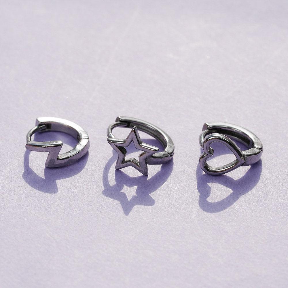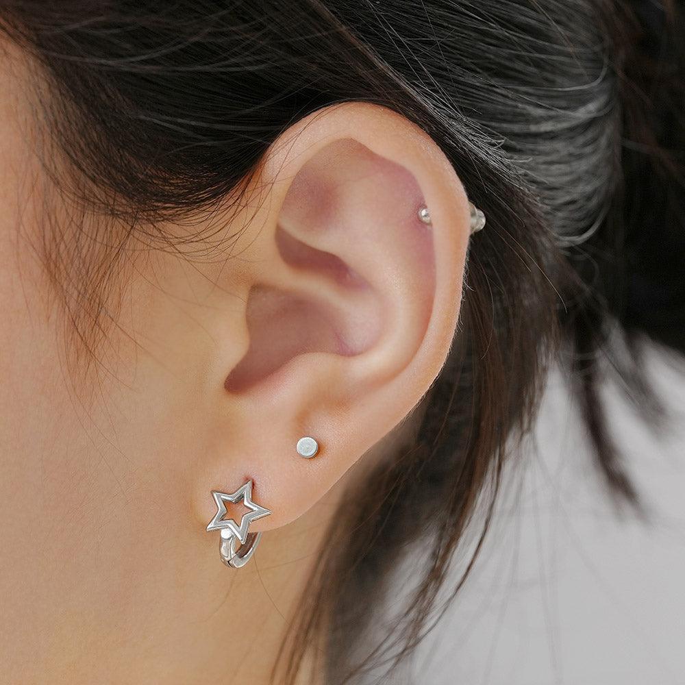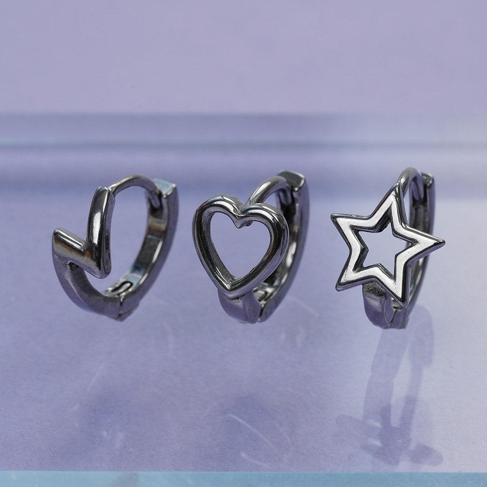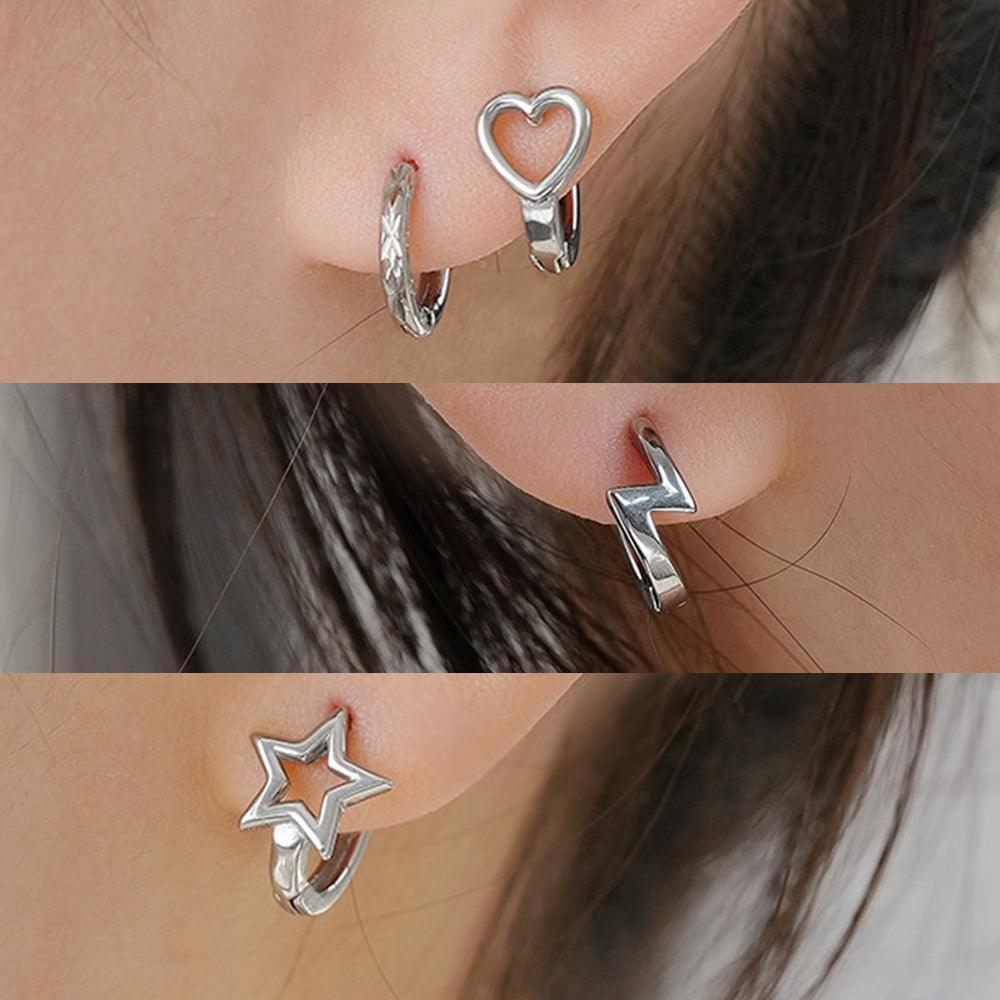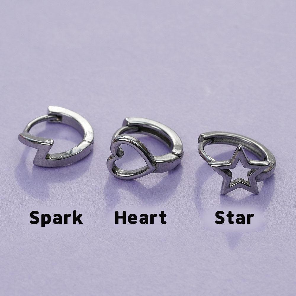 [Surgical] Heart, Star, Lightning, One-touch Ring Earrings (3 Types) 18G