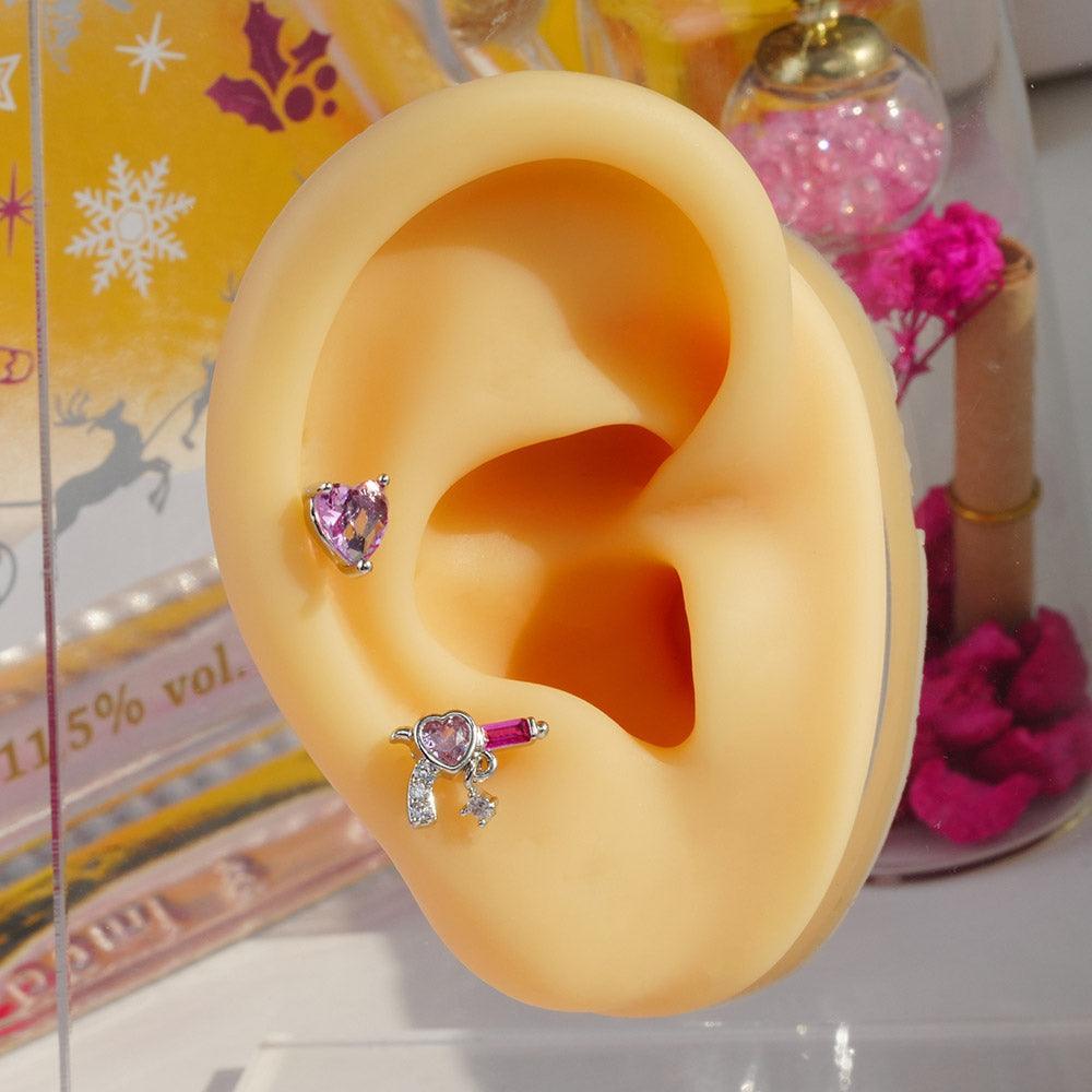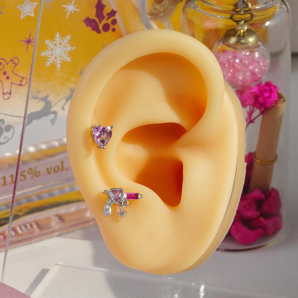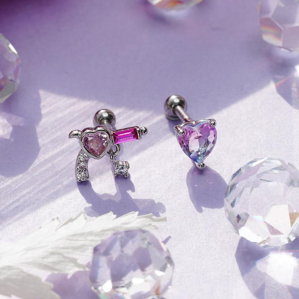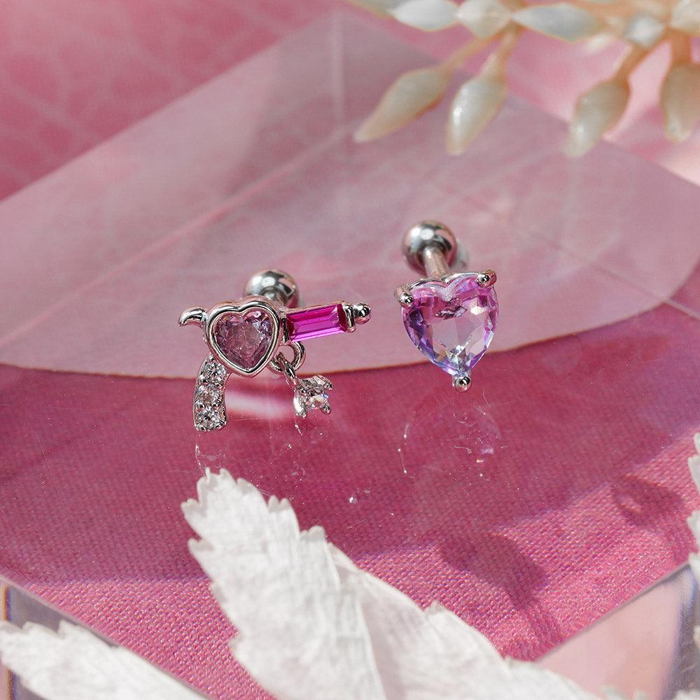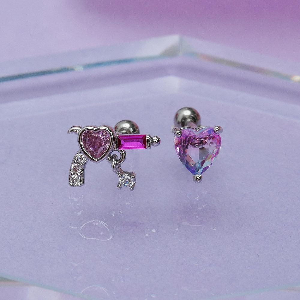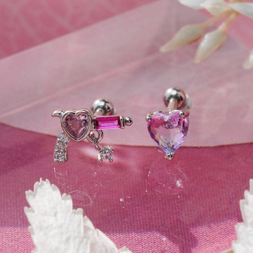 [In stock now] [Surgical] Pink Gun & Heart Piercing (2 Types) 16G/14G Pistol Straight Barbell