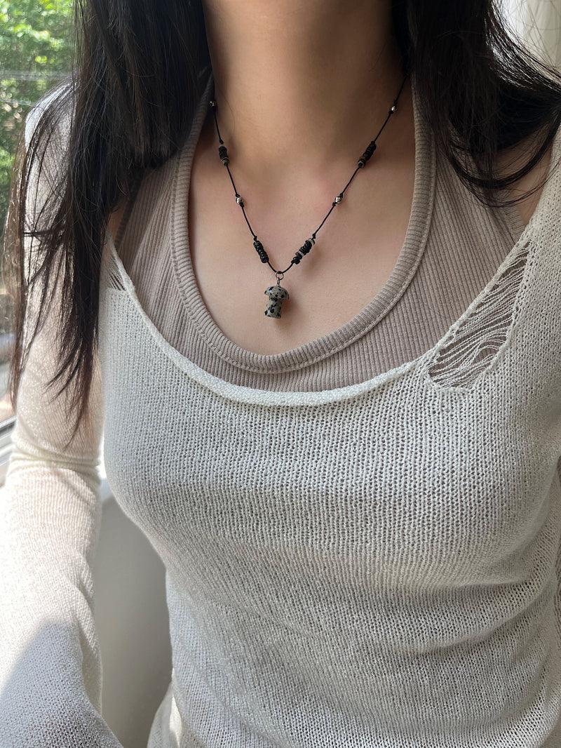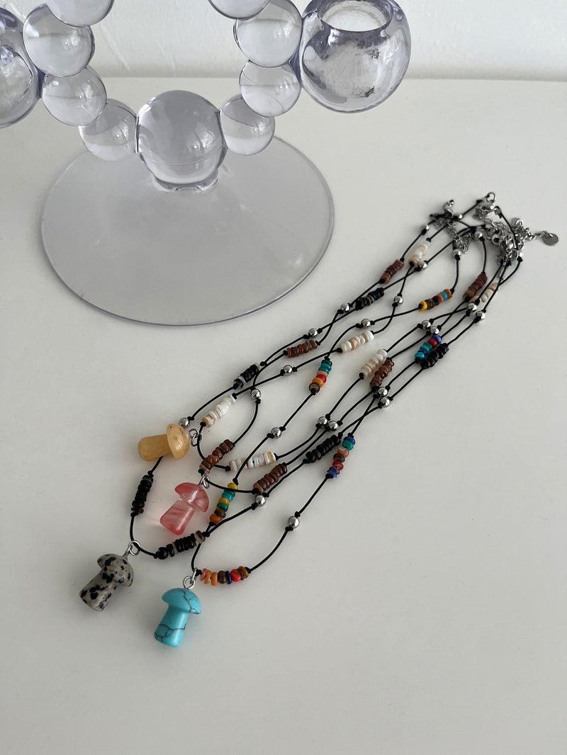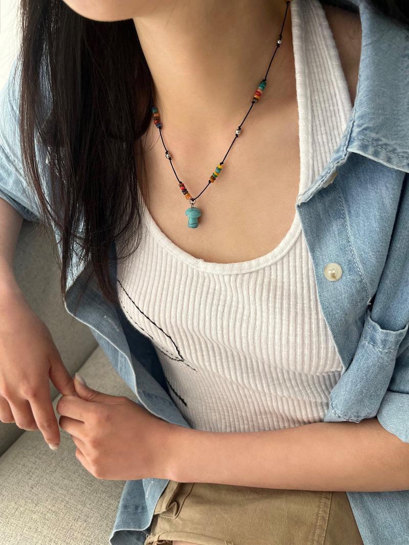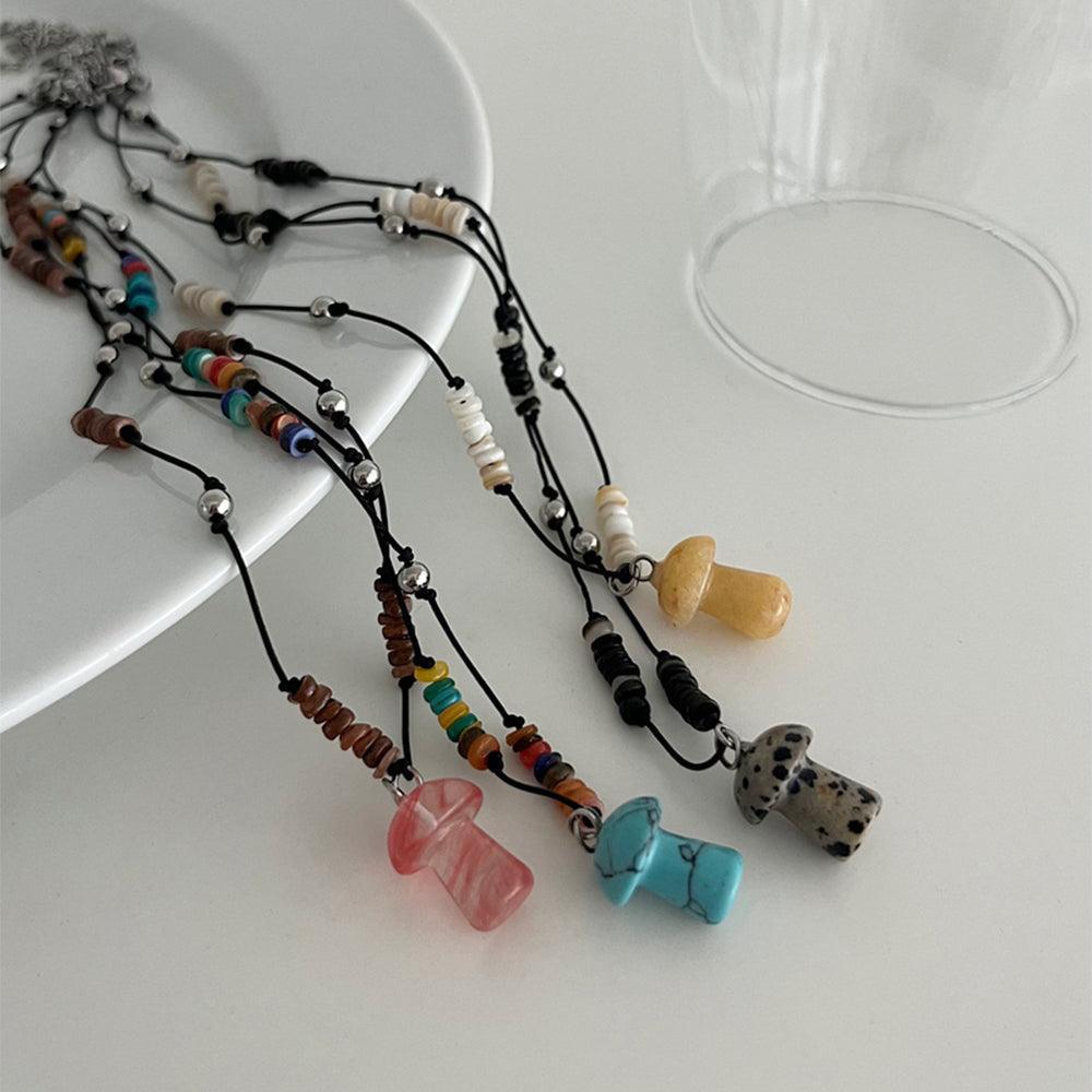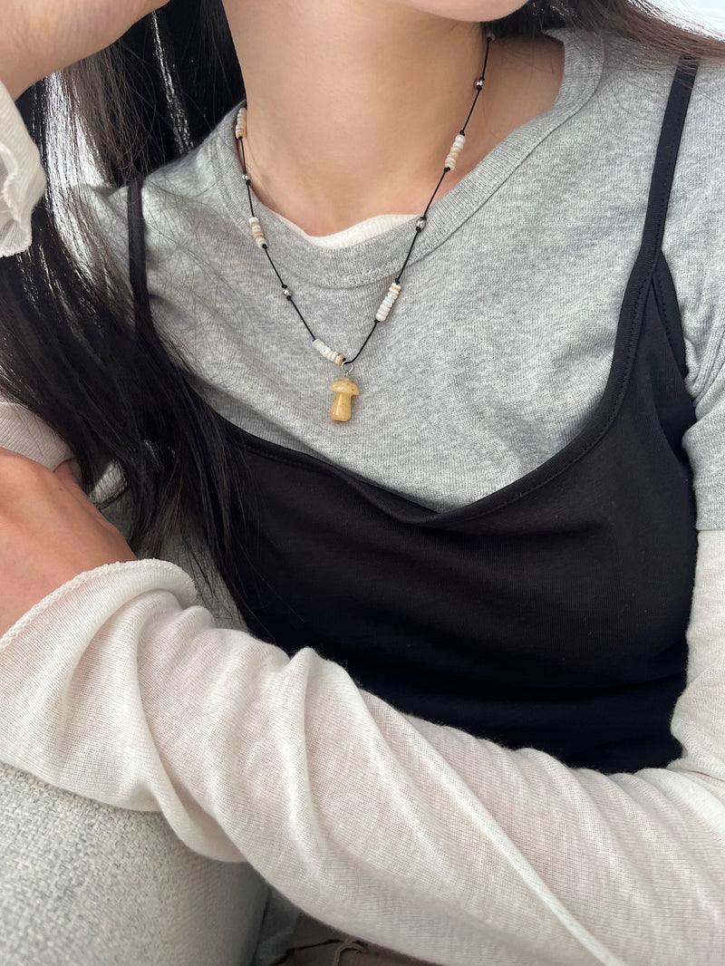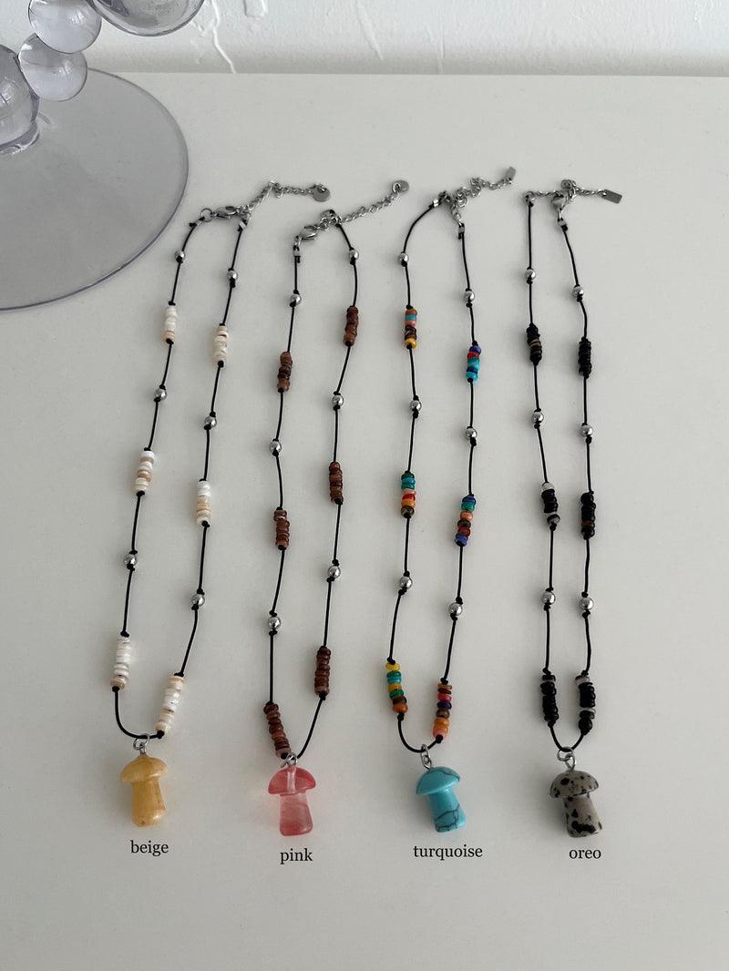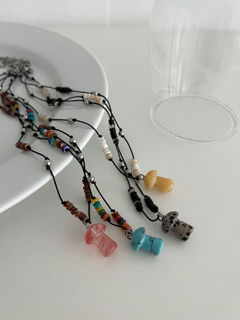 [Surgical] Black String Gemstone Mushroom Necklace (4 Colors) Hypoallergenic