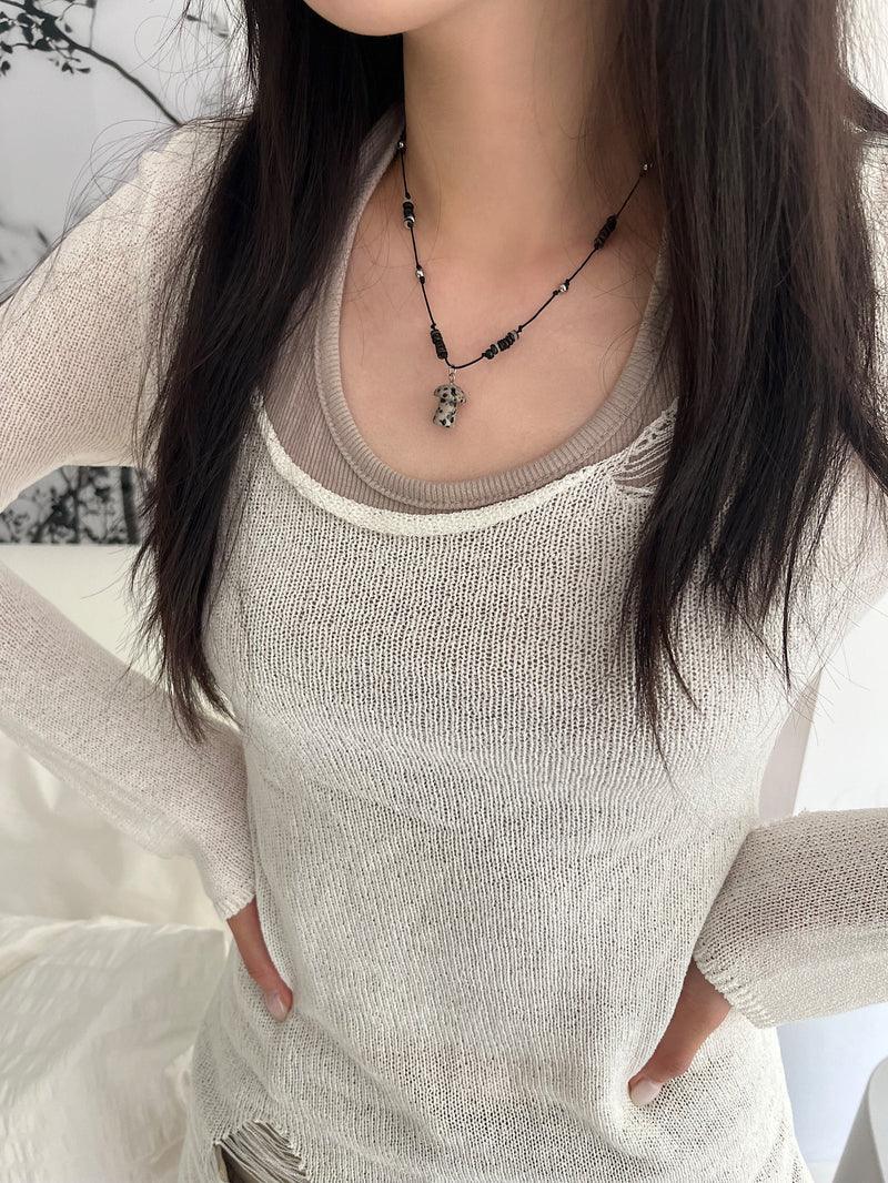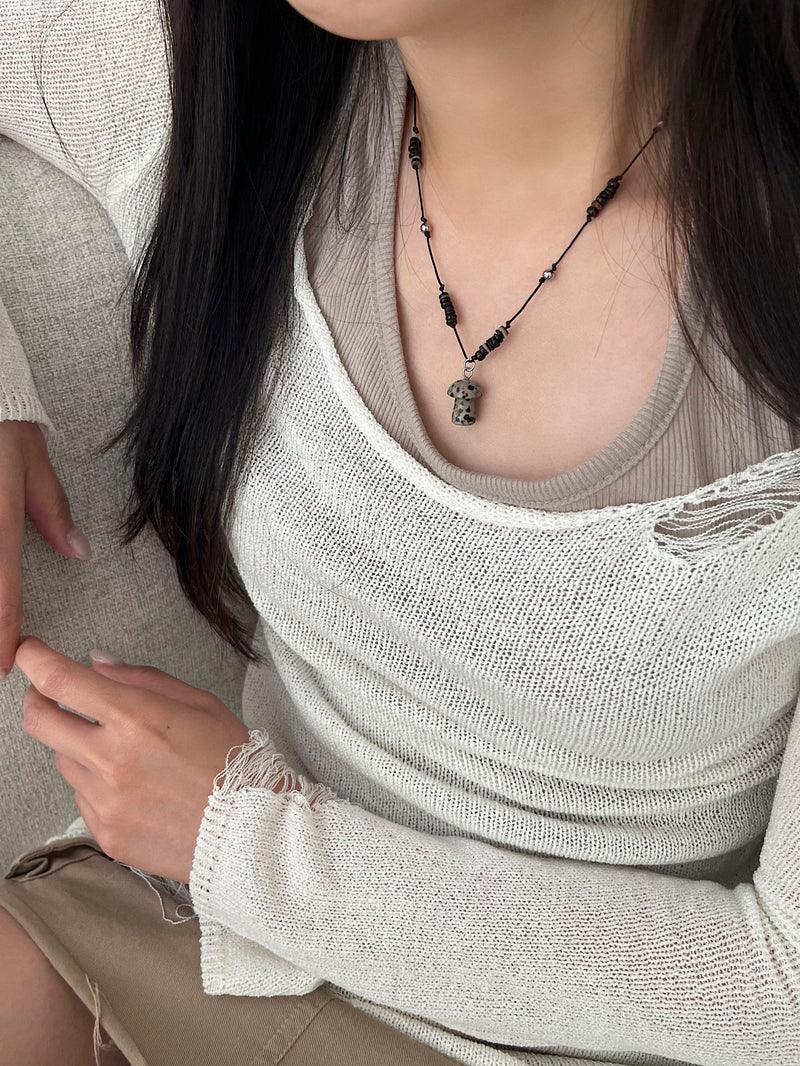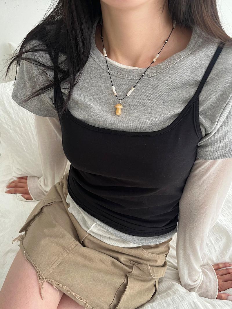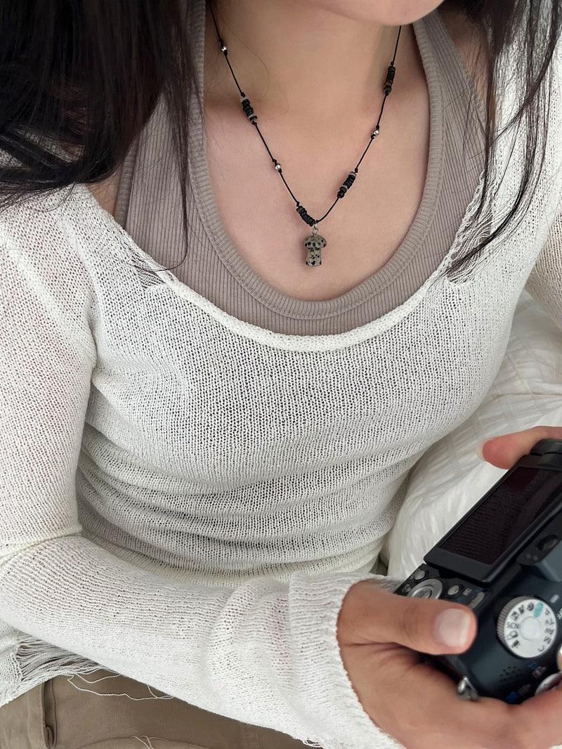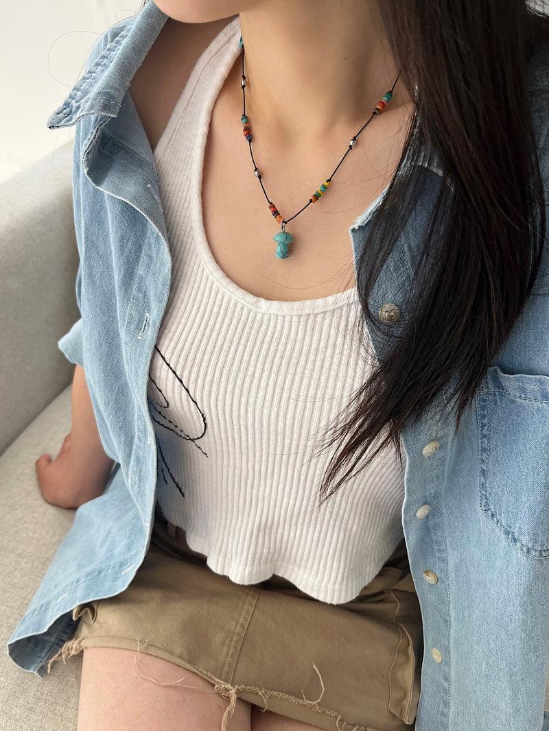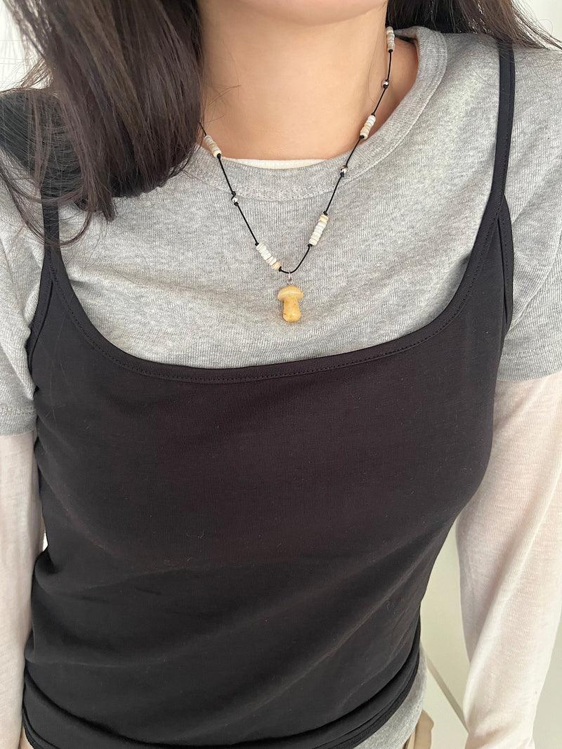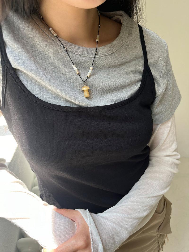 [Surgical] Black String Gemstone Mushroom Necklace (4 Colors) Hypoallergenic