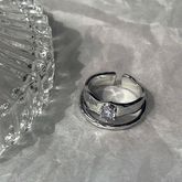 MATERIAL:真鍮、キュービックSIZE : 13号 (オープンリング)リング太さ - 約5mmキュービック装飾 - 横4mm x 縦4mmCOLOR : シルバー >- ¥2,600