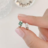 クリー グリーン キュービック ワンタッチリング クローバー ピアス(2Color)