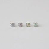 COMMENT #可愛らしいパステルカラーのピアス!#ピアスバー、ボール - サージカルスチール(医療用品として使われる材質だけにアレルギー、変色やアレルギーがない材質です。♡)ピアスの前装飾の素材は神主が混ざっていて、ピアスバーとボールは全体サージカルスチールです。前装飾 - サージカルの上にメッキ処理された材質でアレルギーがひどい方はご参考ください #colorシルバーピンク、パープル、イエロー、グリーン#size0.5 x 0.5 cm- $15.00