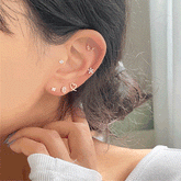 ファッションピアスと同じ厚さで全てのホールに着用できます。 耳を押さえても痛くなるタイプ! MATERIAL : サージカルスチール、真鍮 SIZE : バー長さ:約6mm *製品の測定方法によって1~3cmの誤差が生じることがあります。 ペア・両耳用- $118.00
