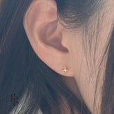 シンプルな花びらラインの中央にキュービックでアクセントを与えたピアスです。 華やかなムードでどの位置にもレイヤードして着用しやすく、耳にフィットするすっきりとしたデイリー用ピアスとしてもおすすめです。 Color : Yellow gold、Rose goldd、White gold Metarial : 14k Gold (58.5%) Weight : 約0.201g Size : 5*5mm バー太さ : 0.7mm / ボールキャッチ : 3mm- $740.00~