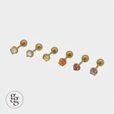 透明で明るく輝く原石のピアスです。大きくない大きさでシンプルですっきりとポイントをつけるのにいいです。6種類のカラーで原石別の意味に応じてお選びください! Color : Yellow gold、Rose gold Metarial : 14k Gold (58.5%) Weight : 約0.155g Size : 2.5mm バー太さ : 0.7mm / ボールキャッチ : 3mm- $644.00~