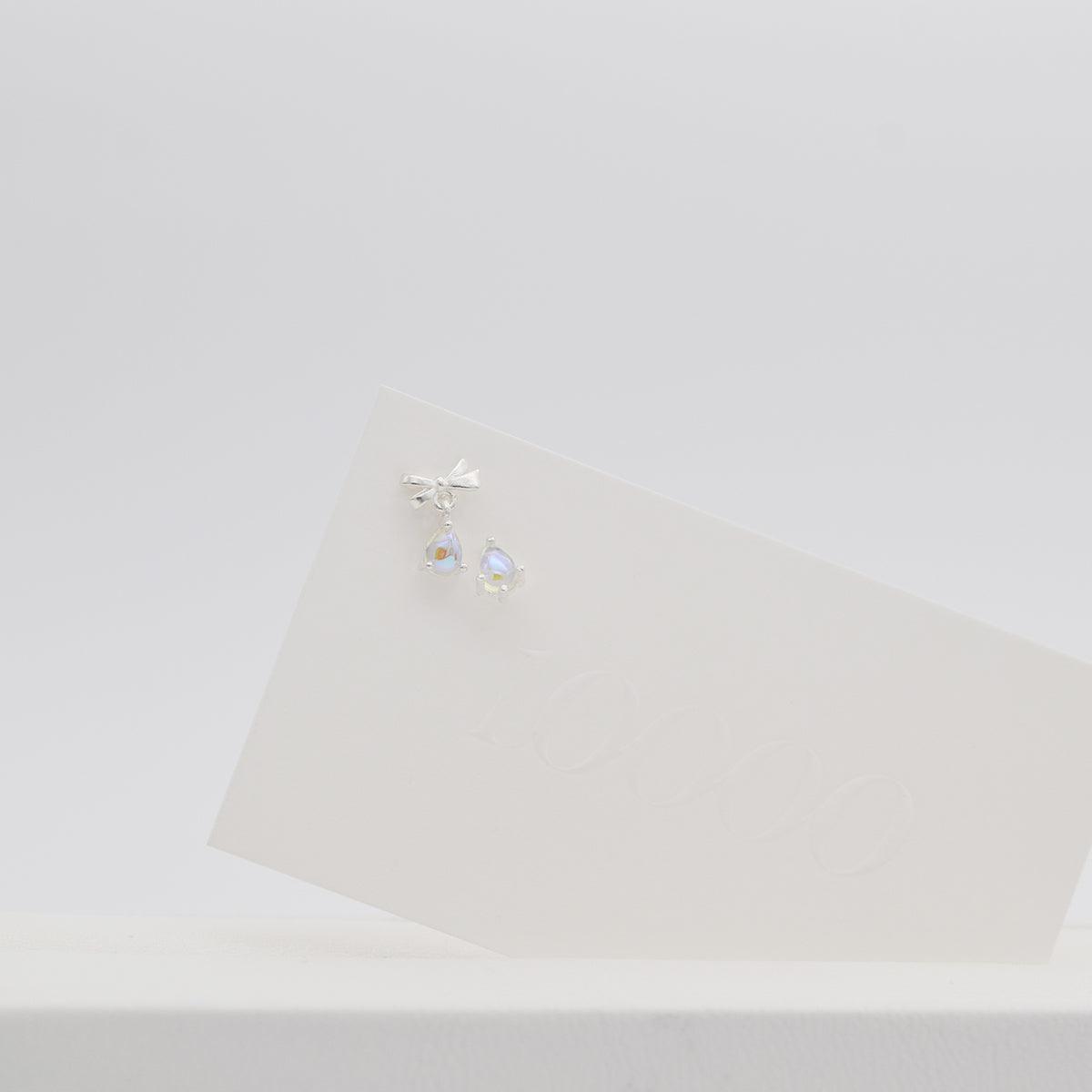 水玉ペンダントに玲瓏たるオーロラキュービックが加わった銀のピアスです。