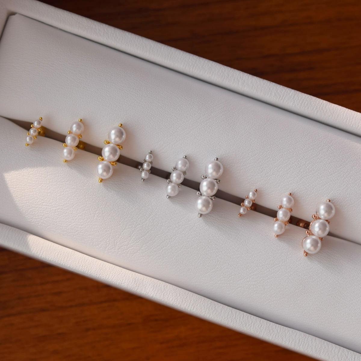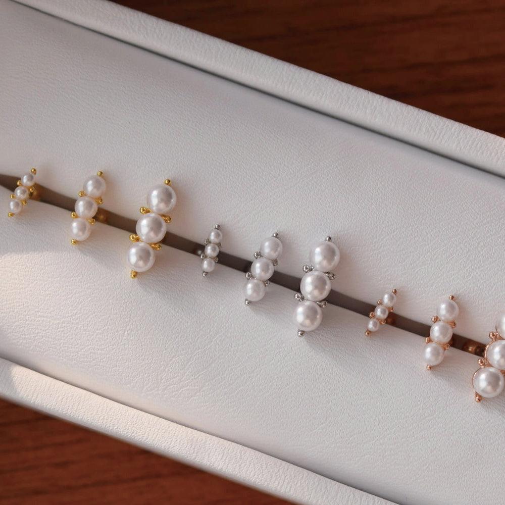 3つのサイズ、3つのカラーで多彩にご用意したトリプルパールピアスです。