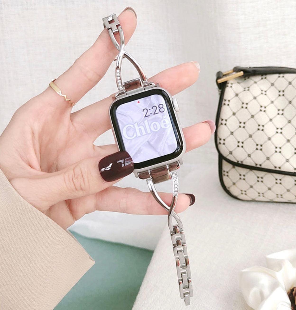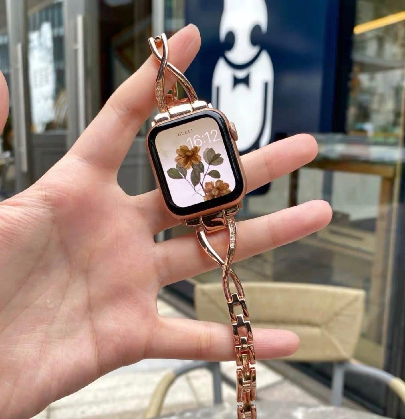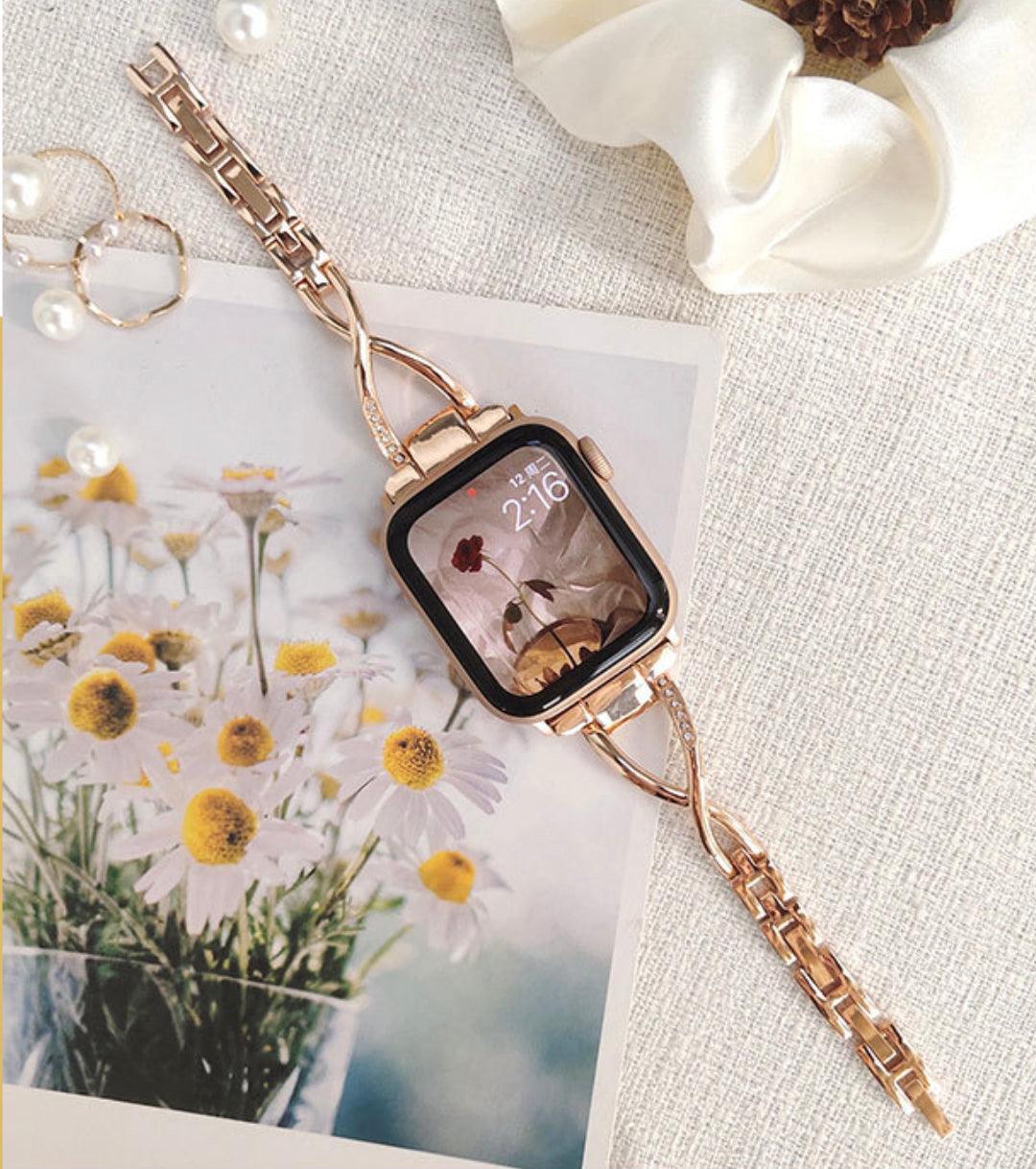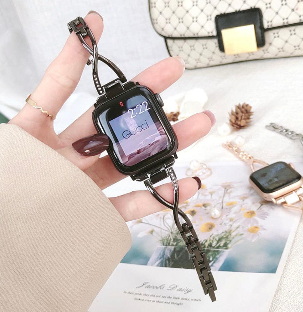 本バンドとキュービック保護ケースをセットでつけると、さらに大人カワイイ高級感のあるアップルウォッチになります。
