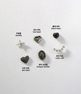 COMMENT #シックな魅力のアンティークピアス! 一緒に着用するときれいな構成です。🖤#ピアス/サジカルスチール#colorシルバー#sizeドットハート0.7x0.6cmラインハート0.6x0.6cmブラックハート0.5x0.5cmキュービックカフ1.2x0.4cmトゥインクル0.6x0.6cmアンティークトゥインクル0.6x0.8cm- 371.00 ฿~