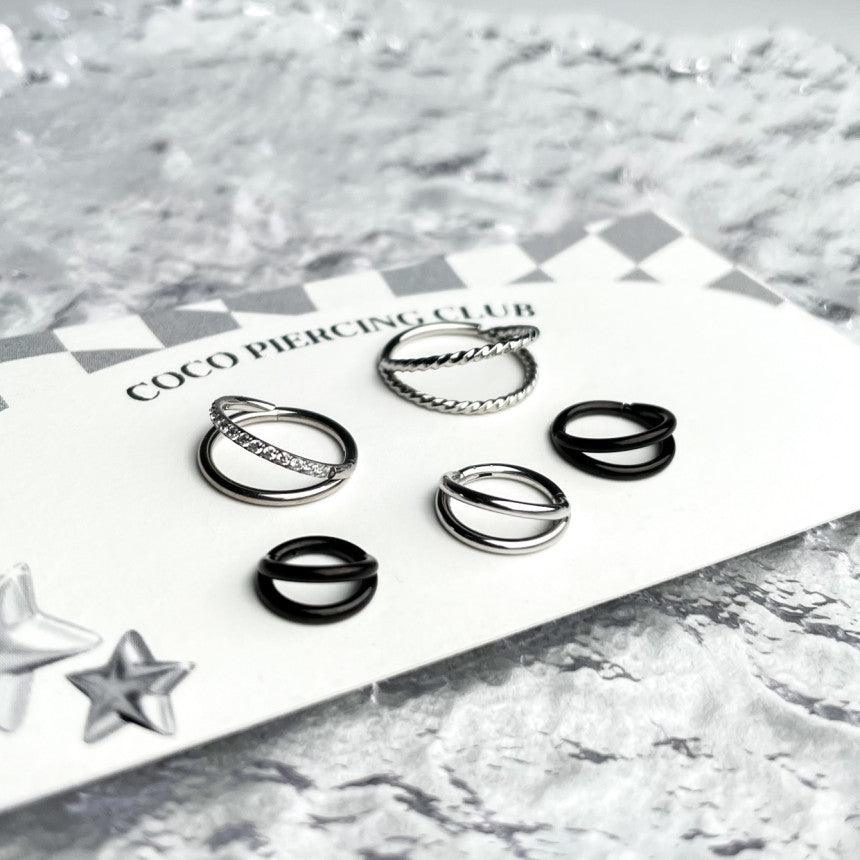 ダブルラインデザイン リングピアス (5Type) 唇ピアス ボディピアス 16G
