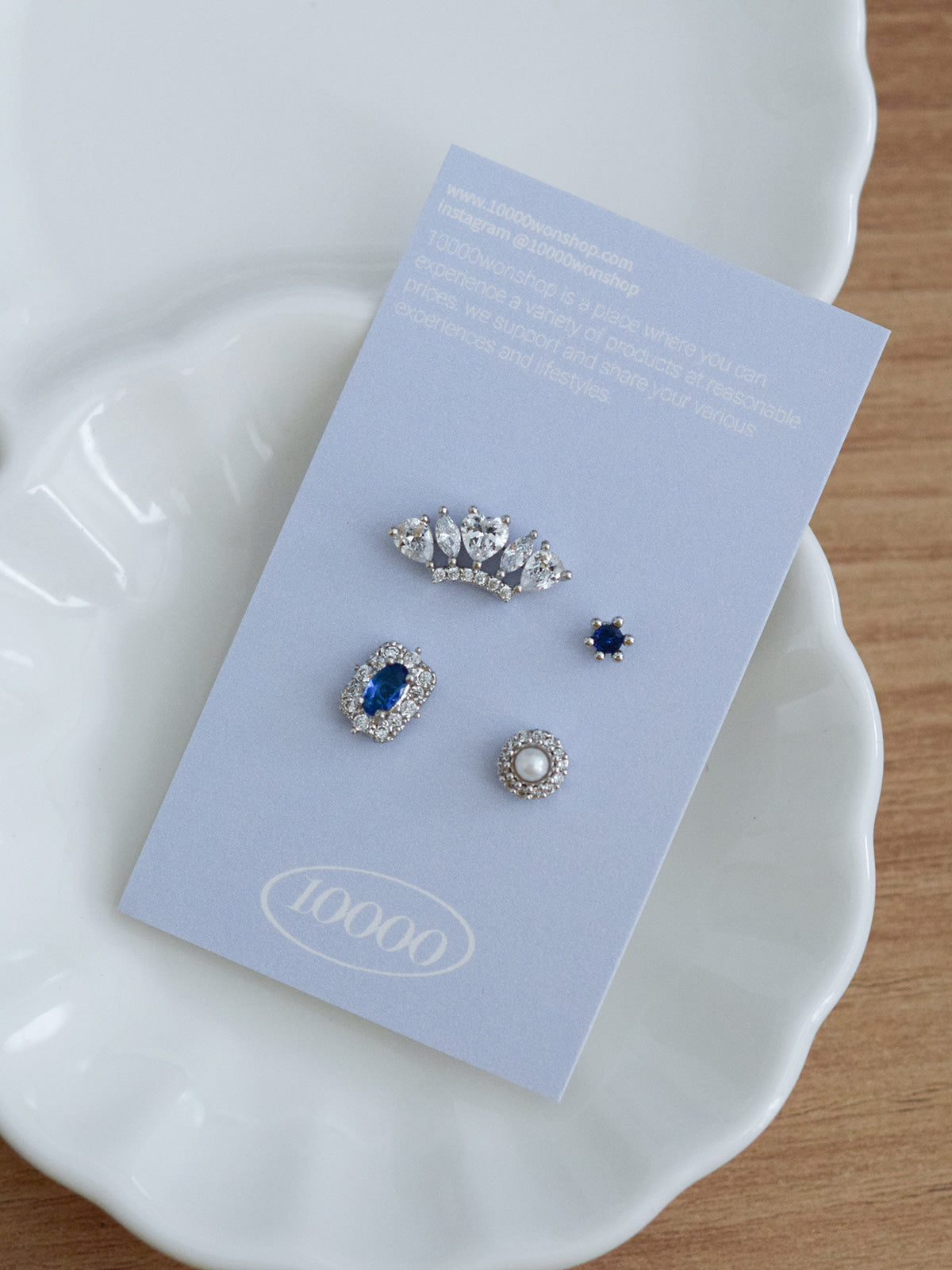 深みのあるクリアなブルーストーンが際立つシグネチャーピアスセットです。