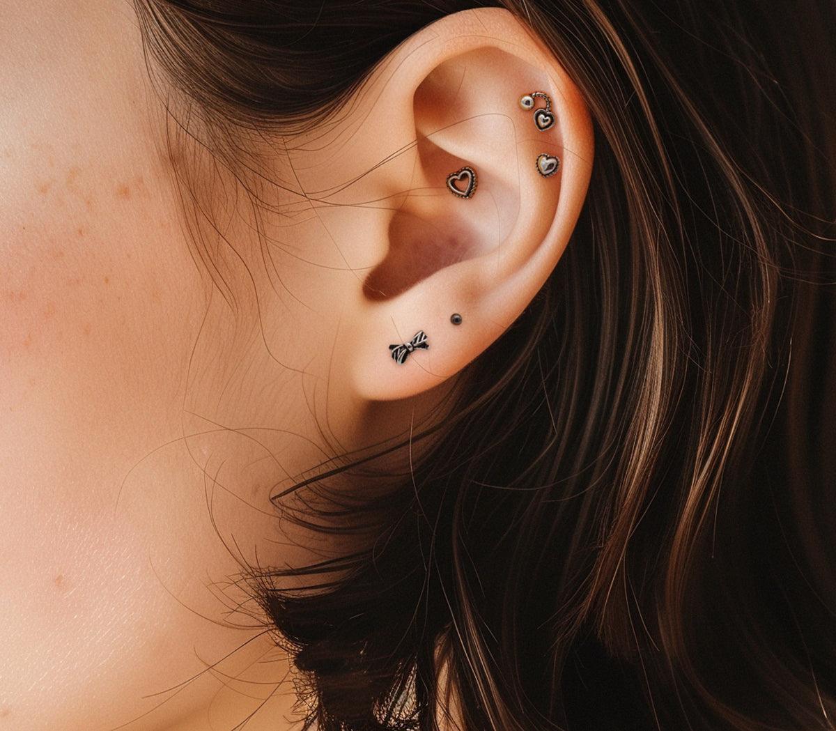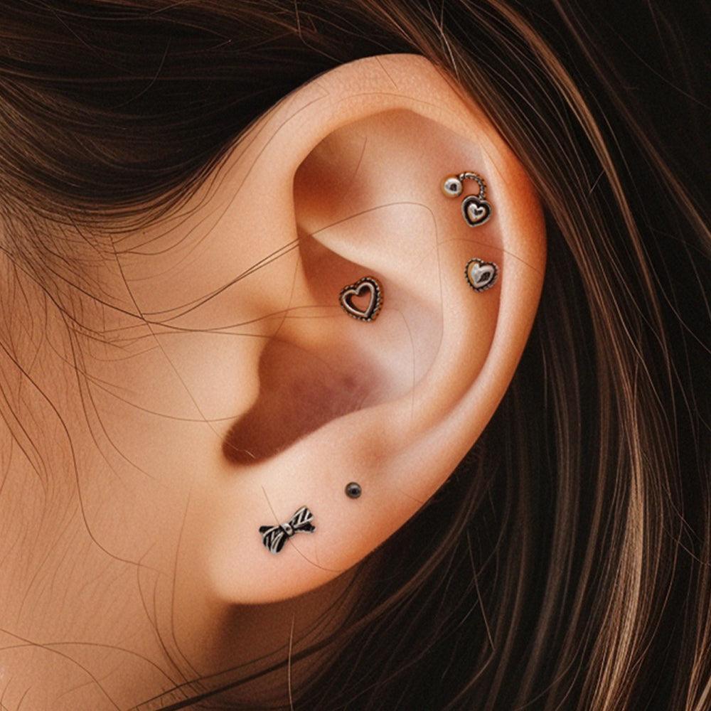 1. [サージカルスチール] 双ハートラインのバーベルピアス