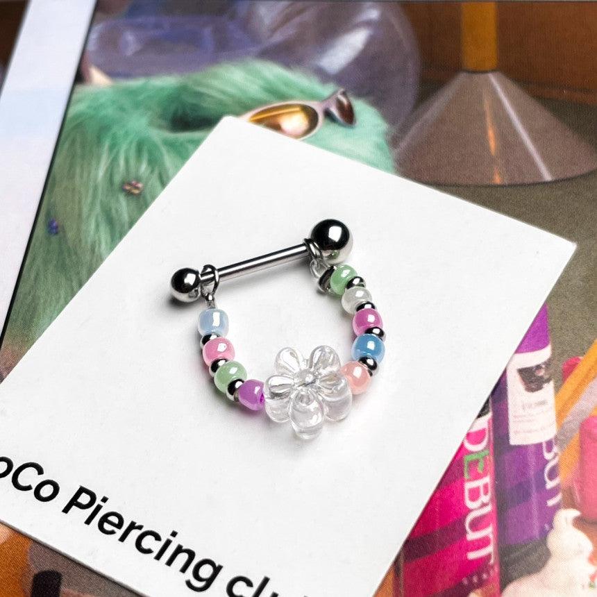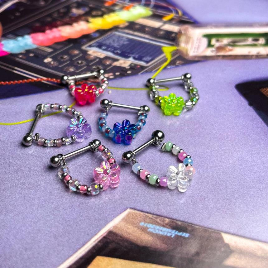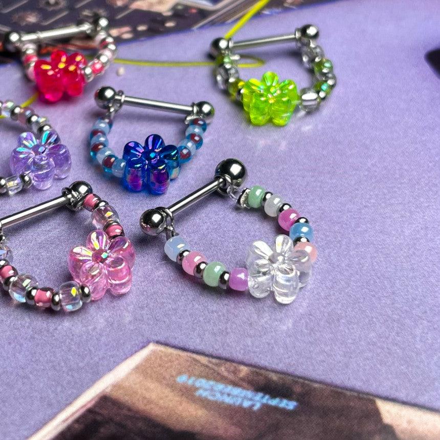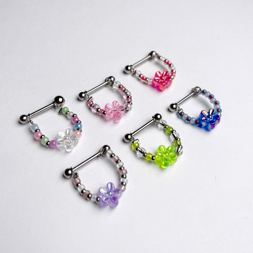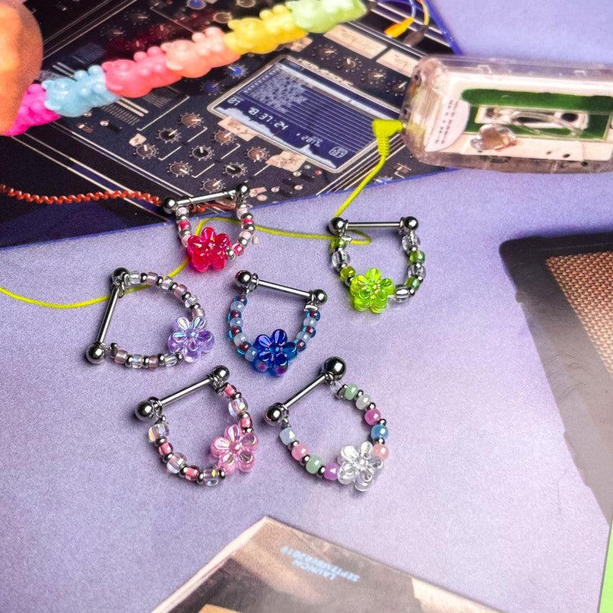 色とりどりのキッチュなカラー組み合わせのココピアスクラブのデザイン制作商品フラワーインナーカンツビーズチェーンです!!