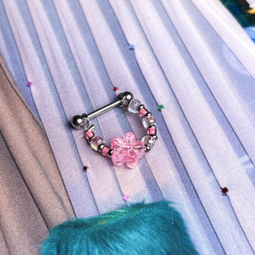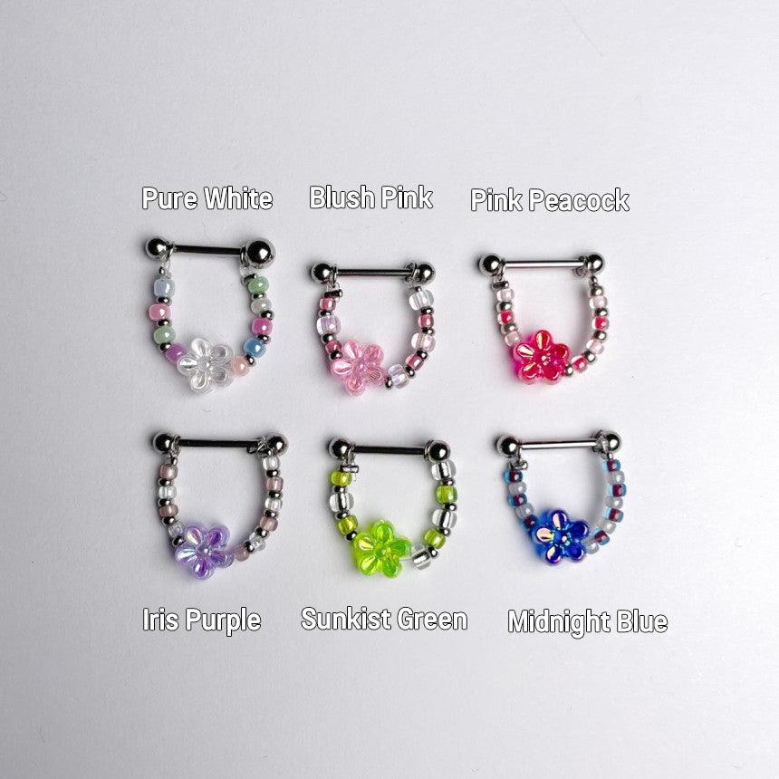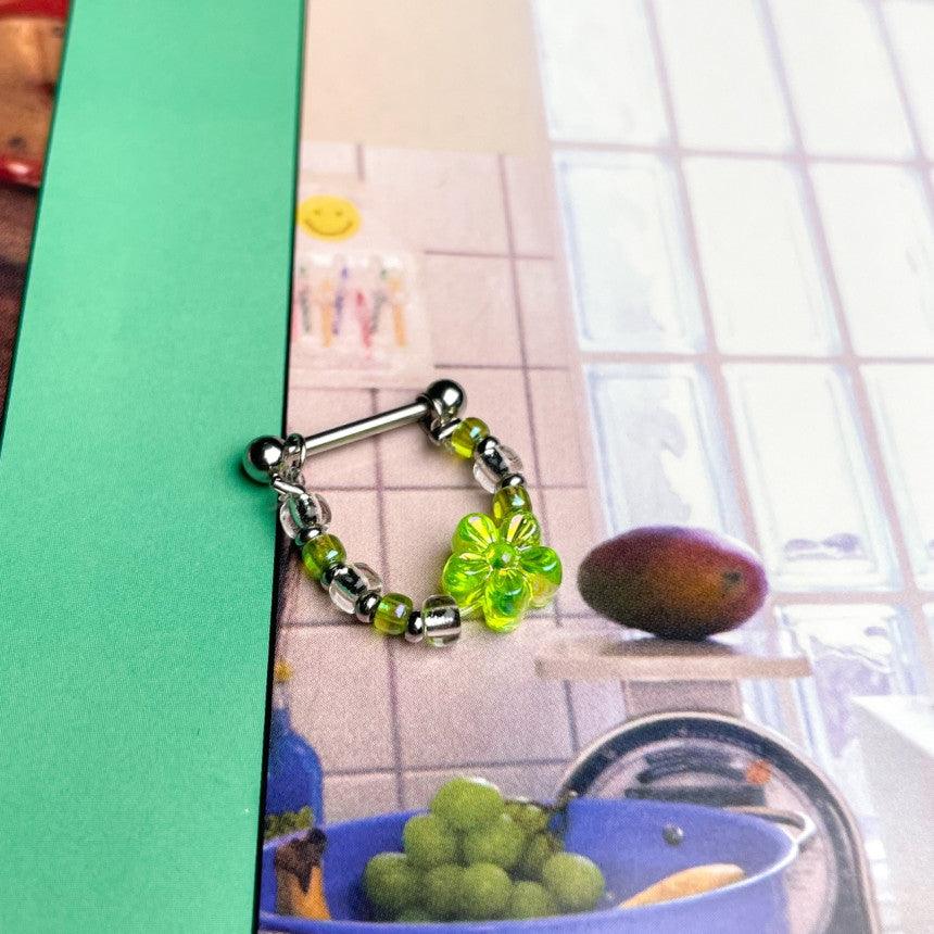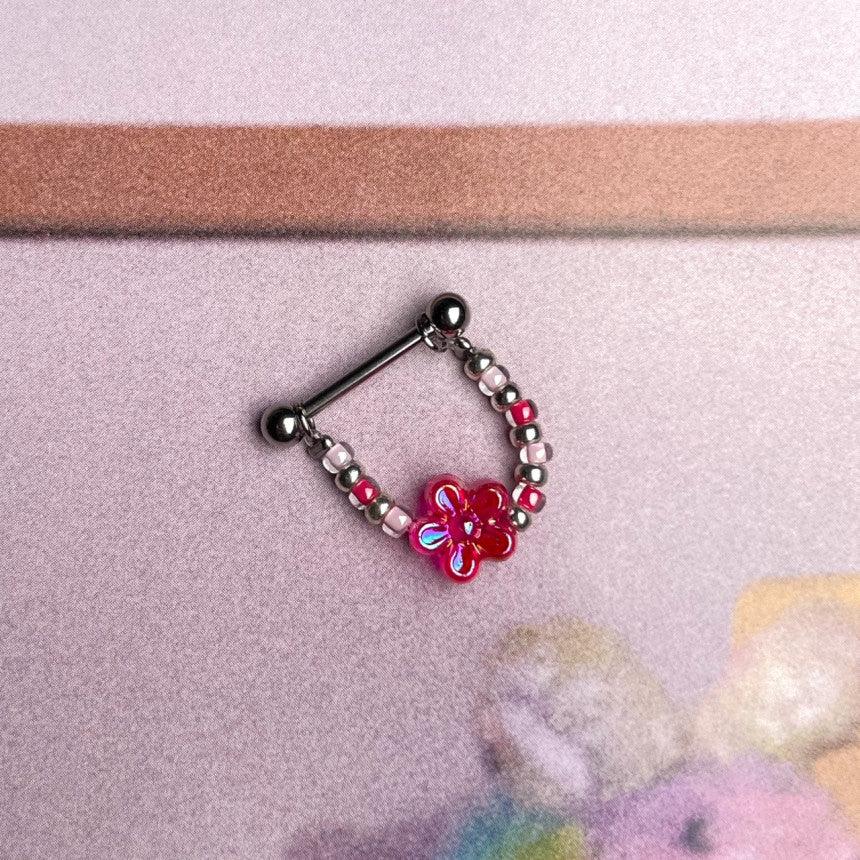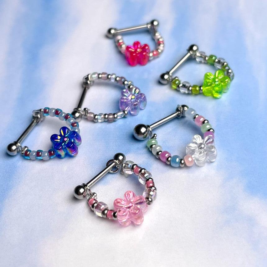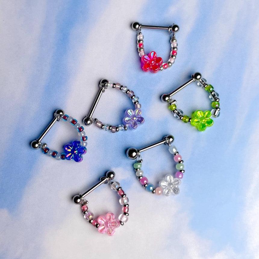 色とりどりのキッチュなカラー組み合わせのココピアスクラブのデザイン制作商品フラワーインナーカンツビーズチェーンです!!