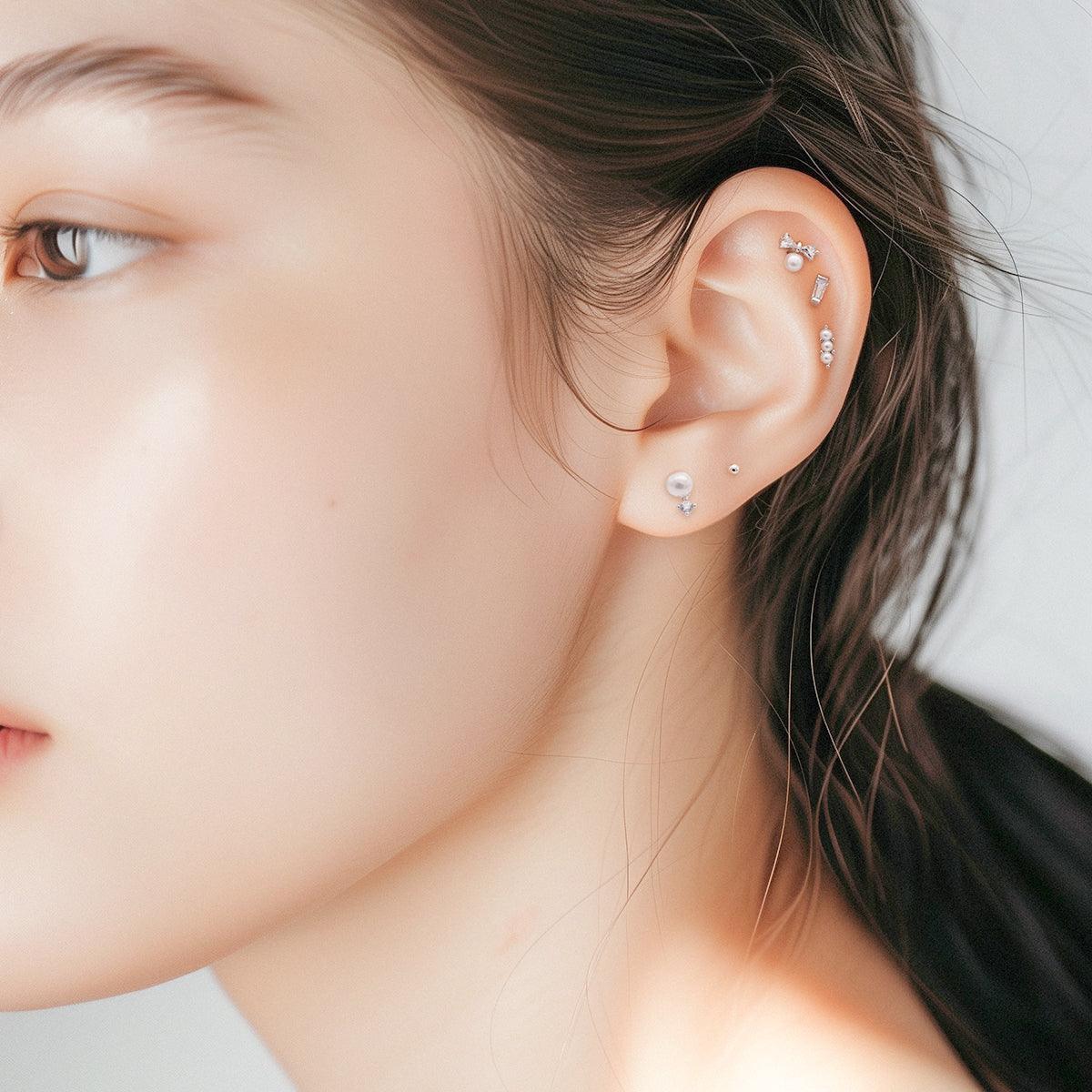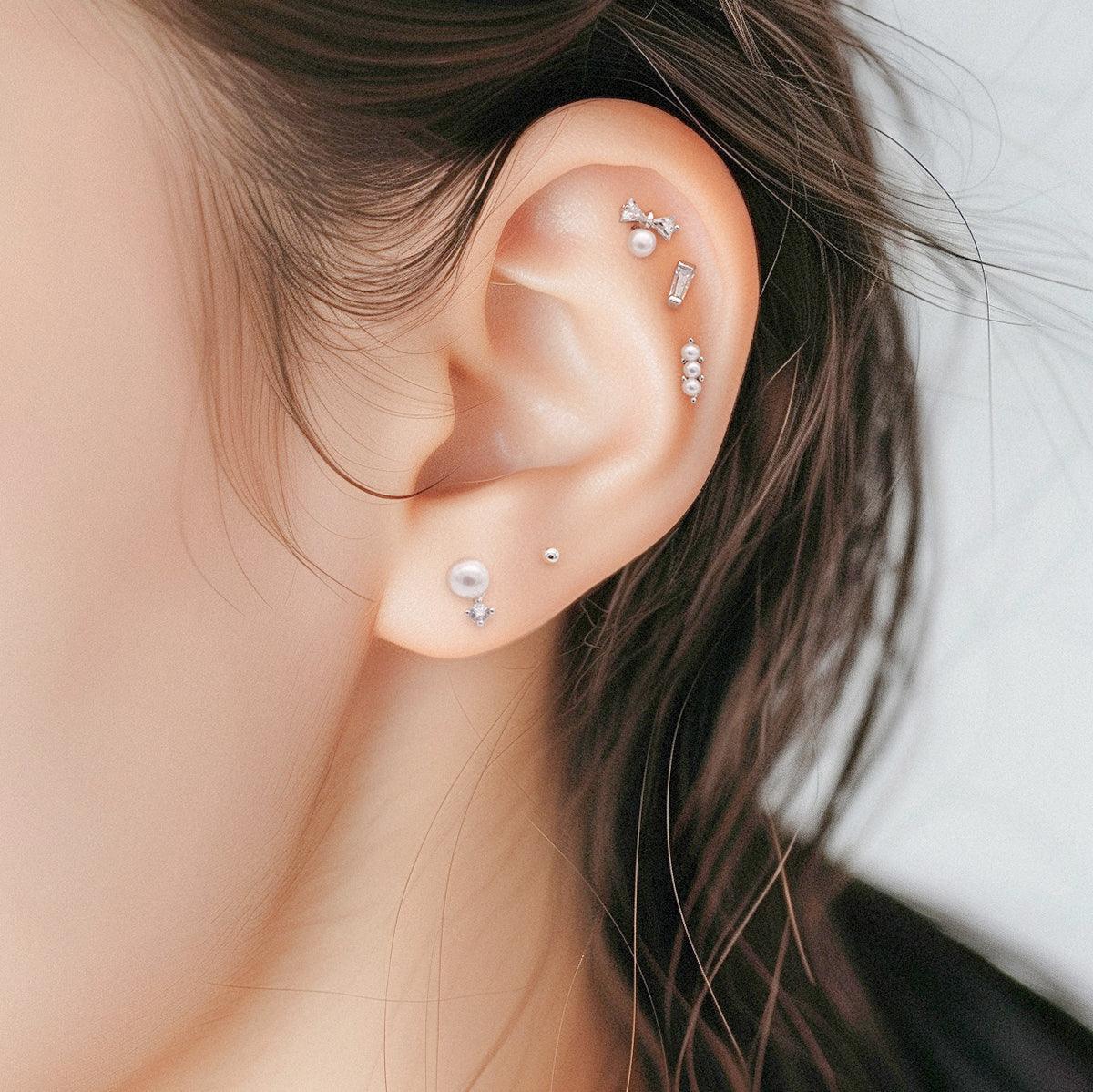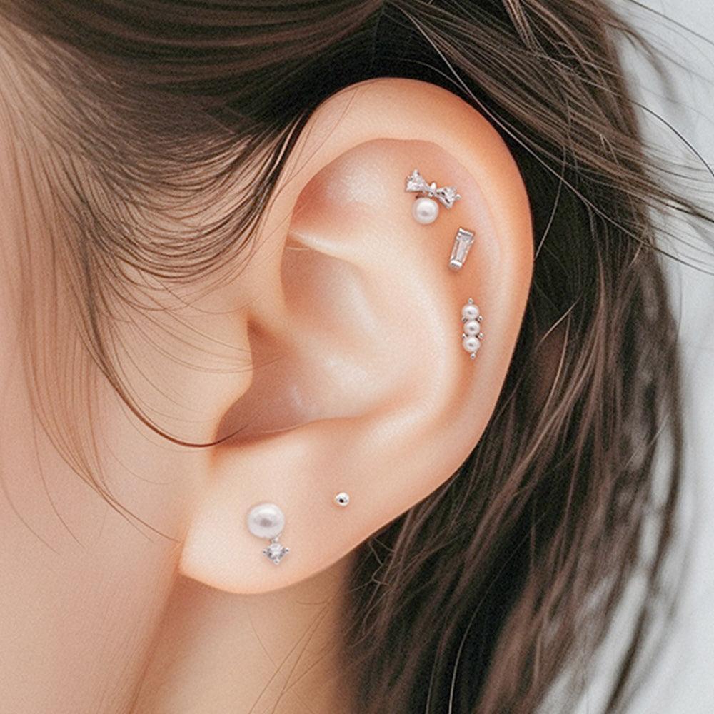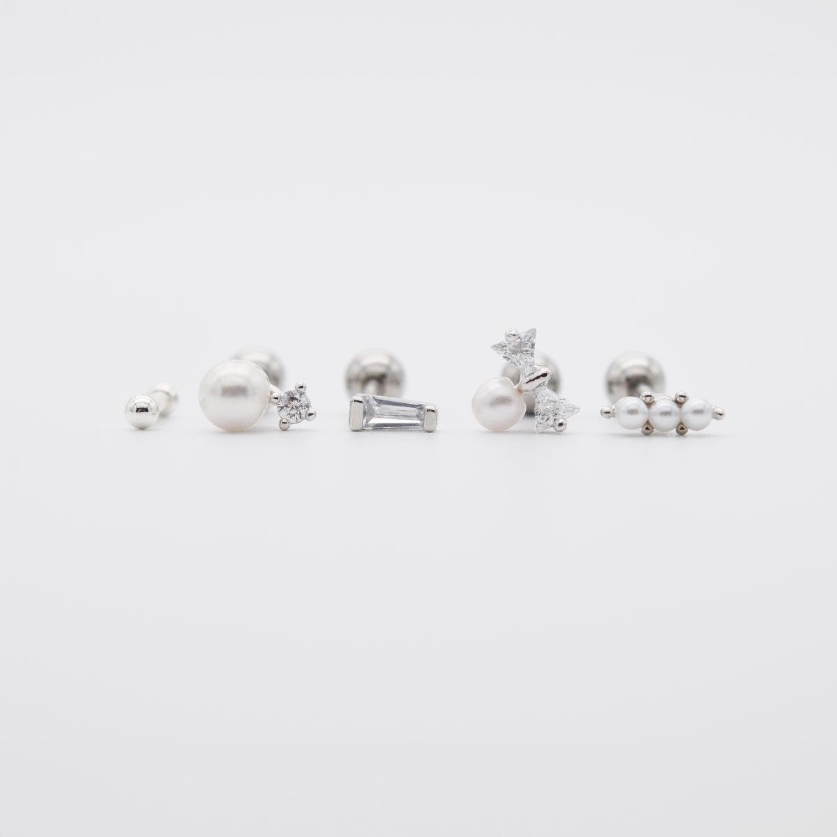 5. [サージカルスチール] トリプル真珠バーベルピアス