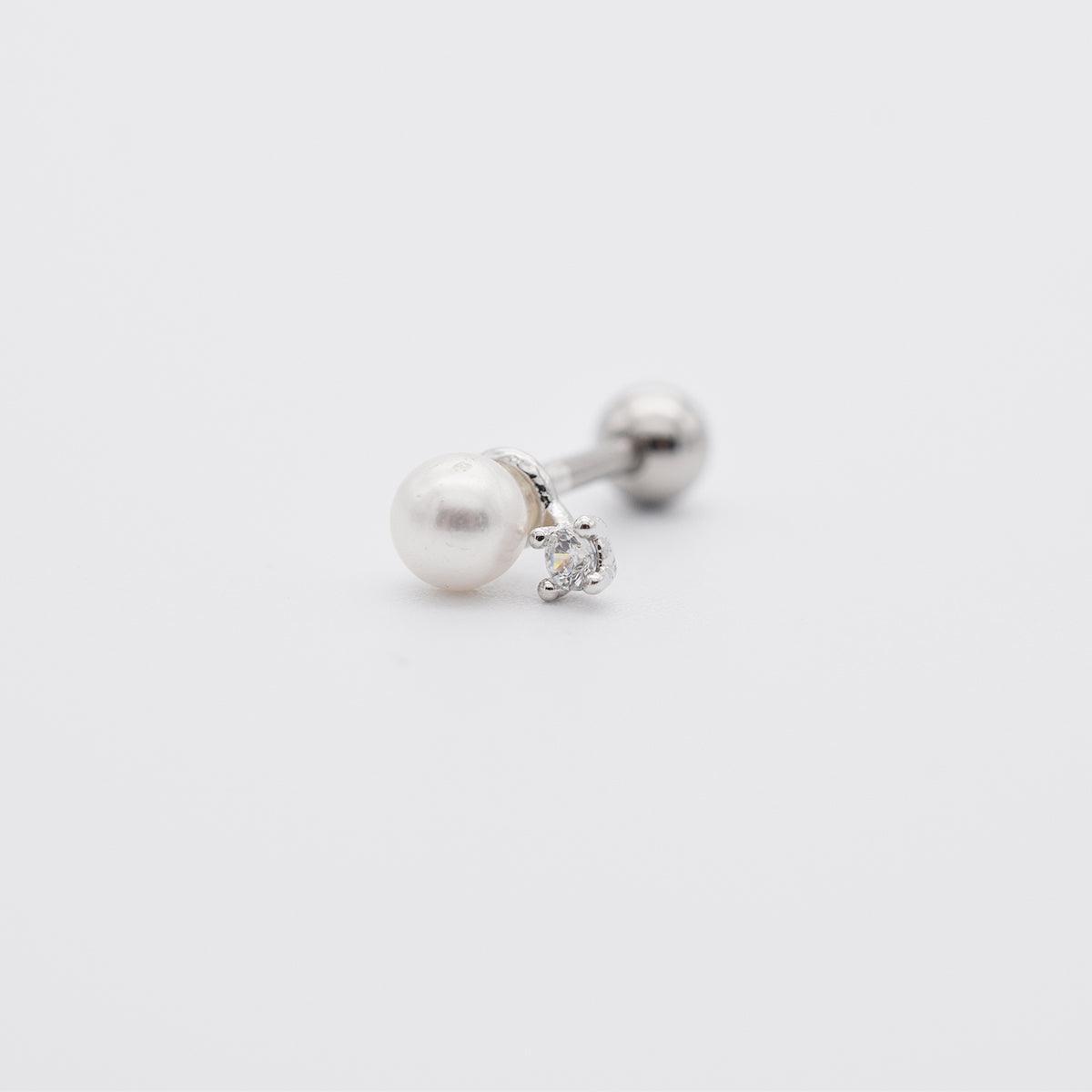 2. [サージカルスチール] パールにミニキュービックバーベルピアス