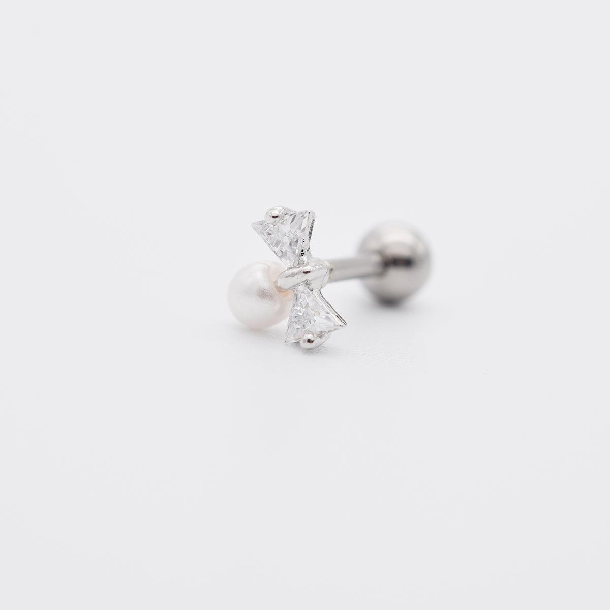 4. [サージカルスチール] リボンキュービック真珠バーベルピアス