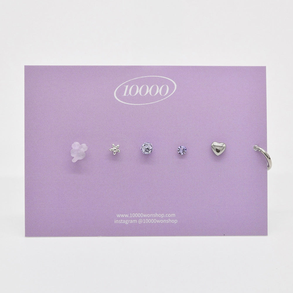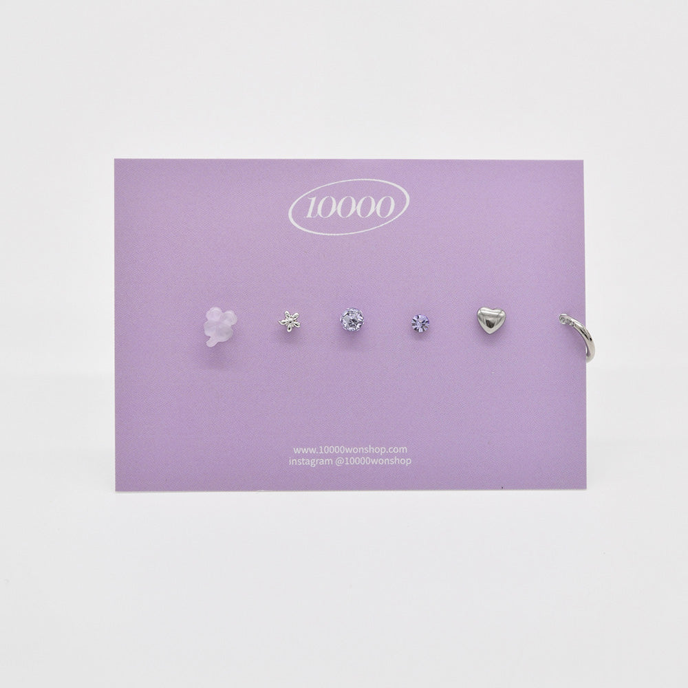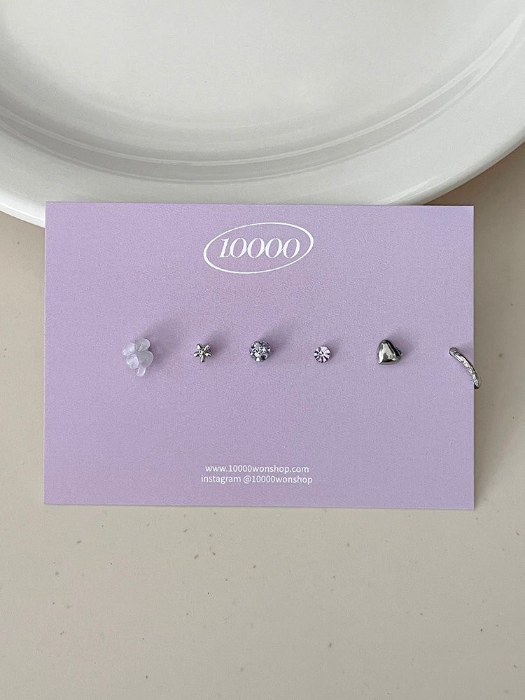 シンプルなハートとキラキラしたキュービック、小さなリングピアスまで一緒に構成されデイリーとしても活用しやすく、柔らかくて楽な雰囲気を演出することができます。