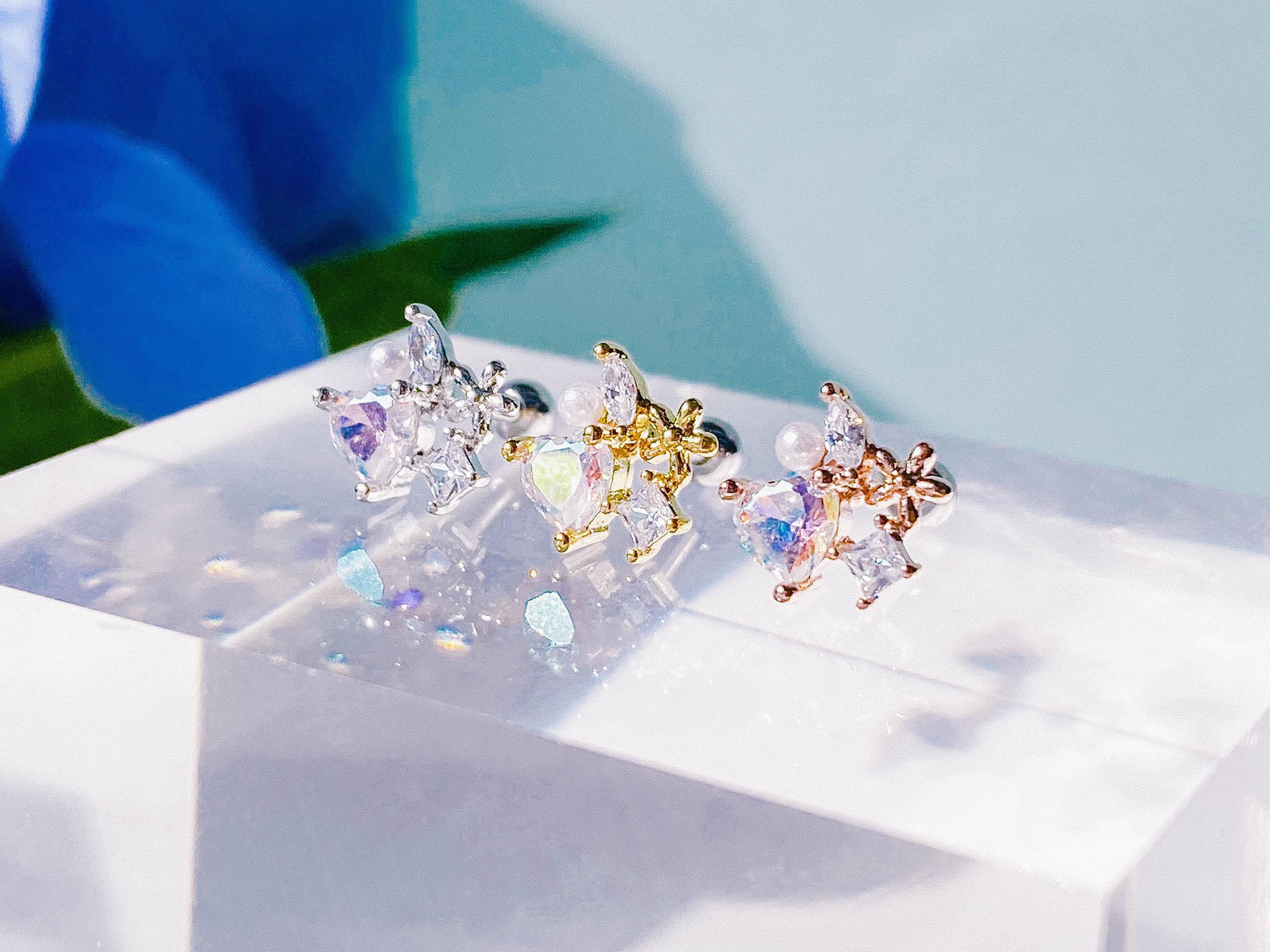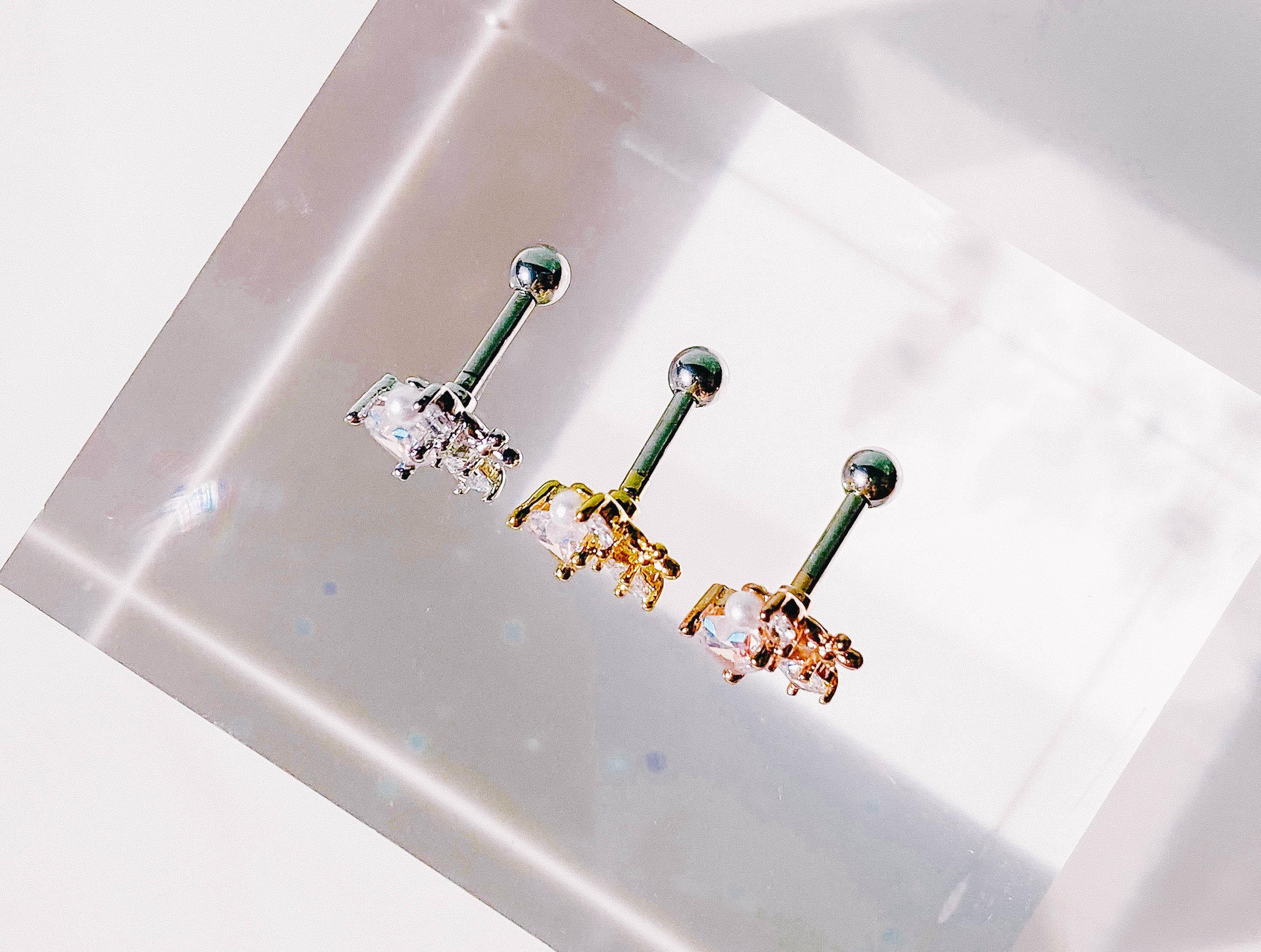*素材:真鍮、サージカルスチール、メッキ、キュービックアクリルパール