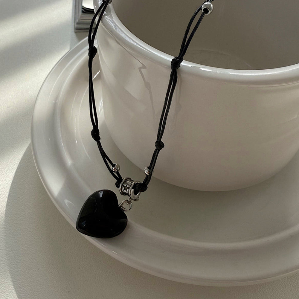 ブラックハートペンダントのリング部分にスター刻印を加えた、 ユニークかつヴィンテージ感のあるブラックストリングネックレス