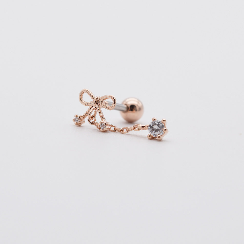 2.[サージカルスチール]リボンカラーキュービックドロップピアス