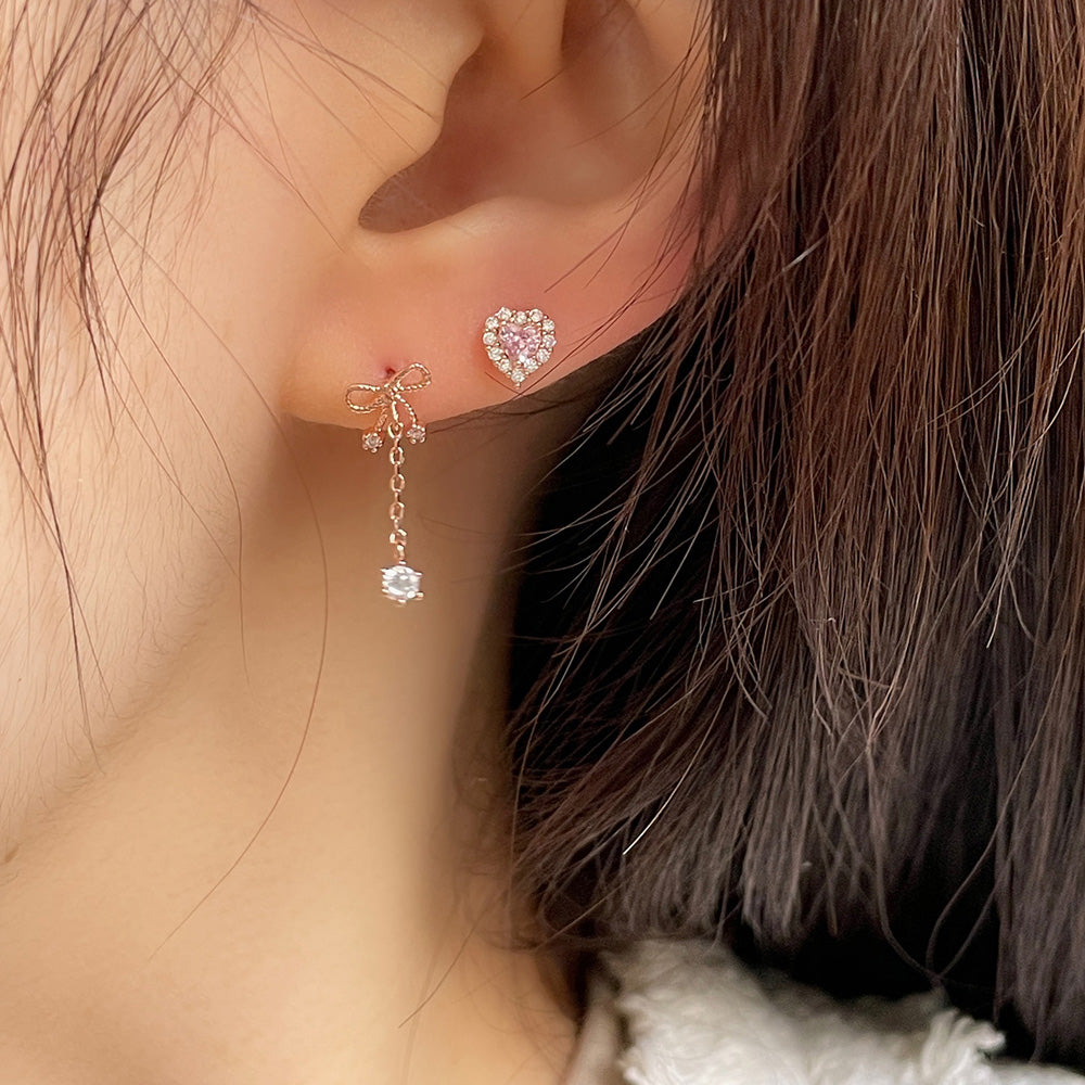 3.[サージカルスチール]ミニハートカラーキュービックドロップピアス