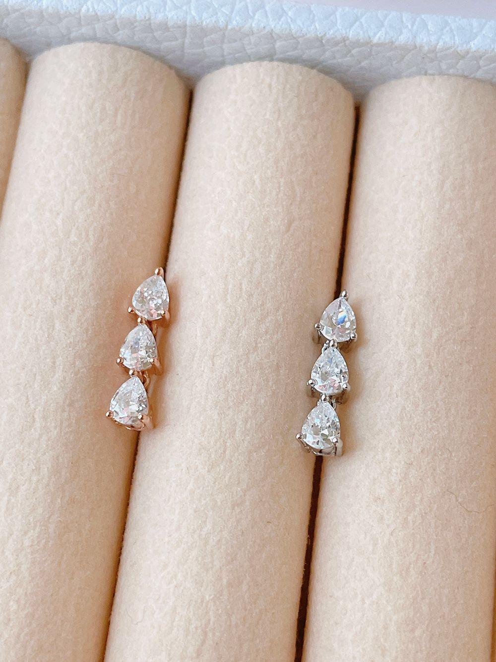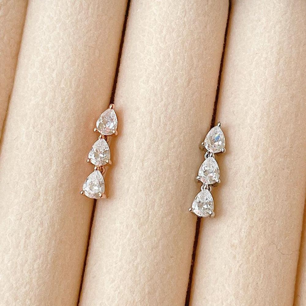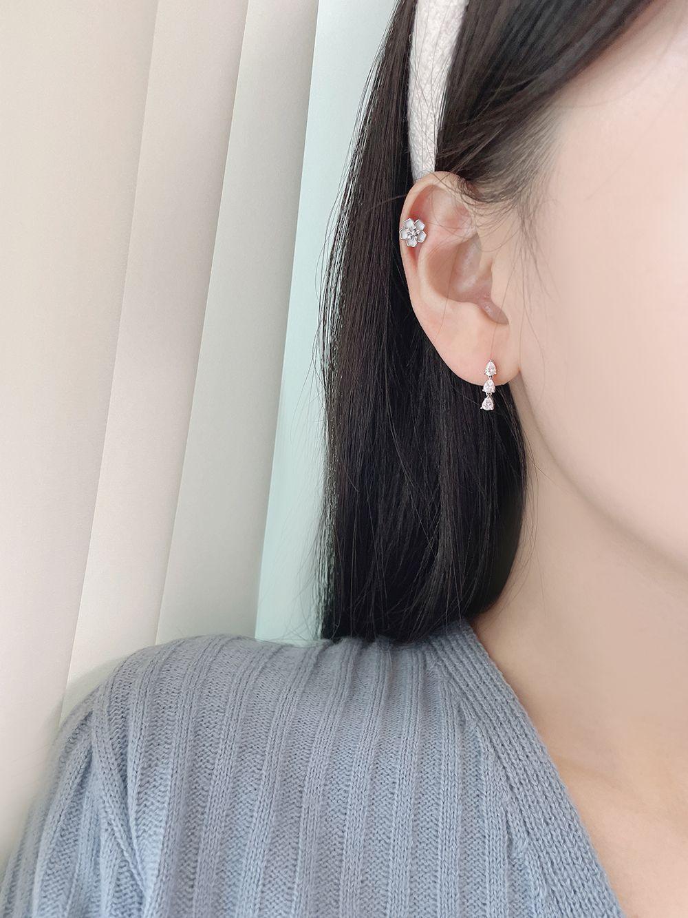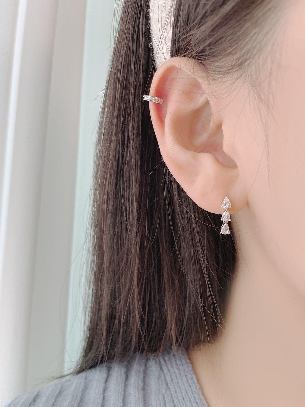ต่างหูระย้าคู่นี้มีดีไซน์เป็นเพชรคิวบิกเซอร์โคเนียลายจุดสามจุดที่พลิ้วไหวเป็นลวดลายหยดน้ำ ทำให้ดูเป็นผู้หญิงและเปล่งประกาย!