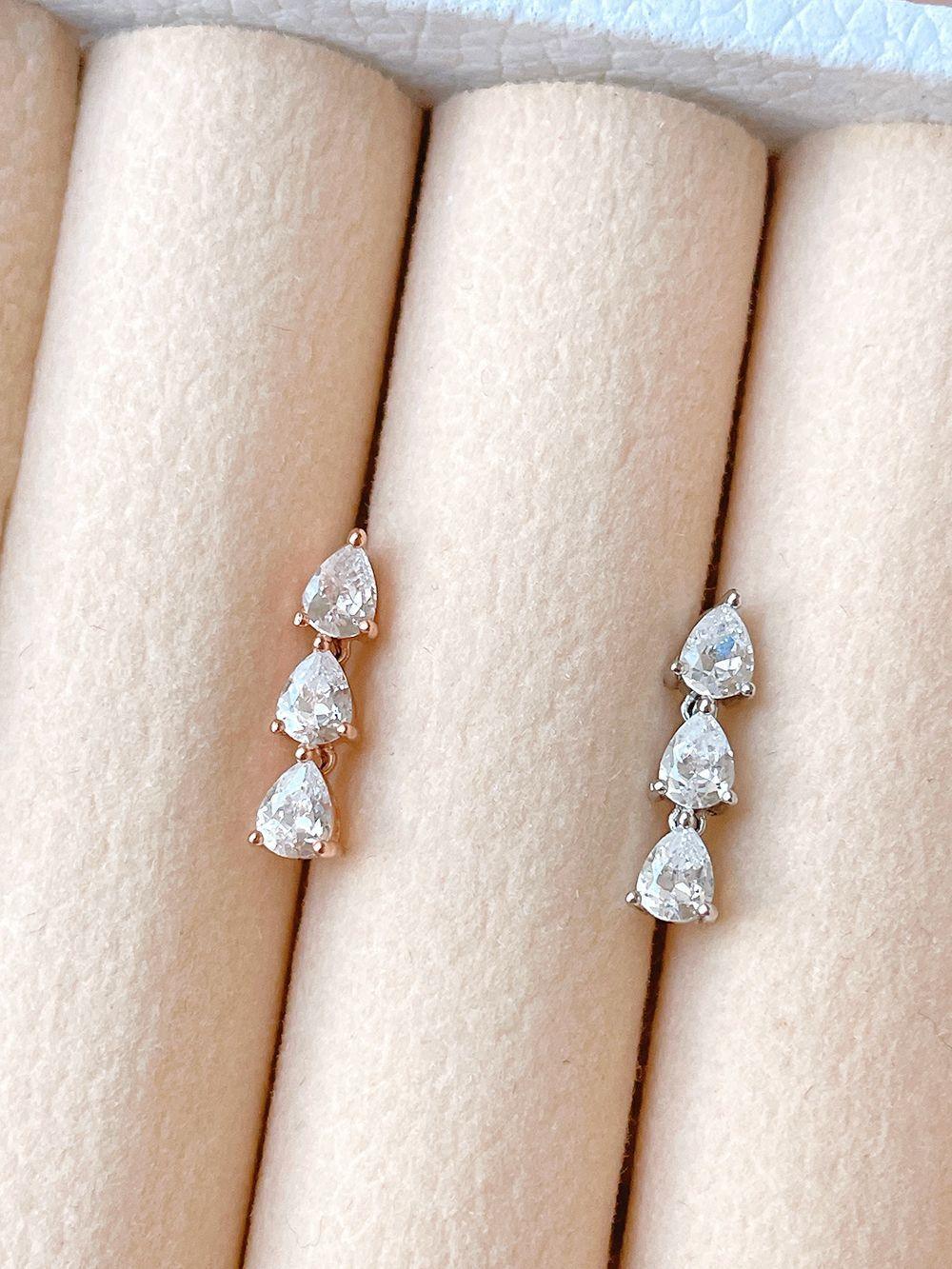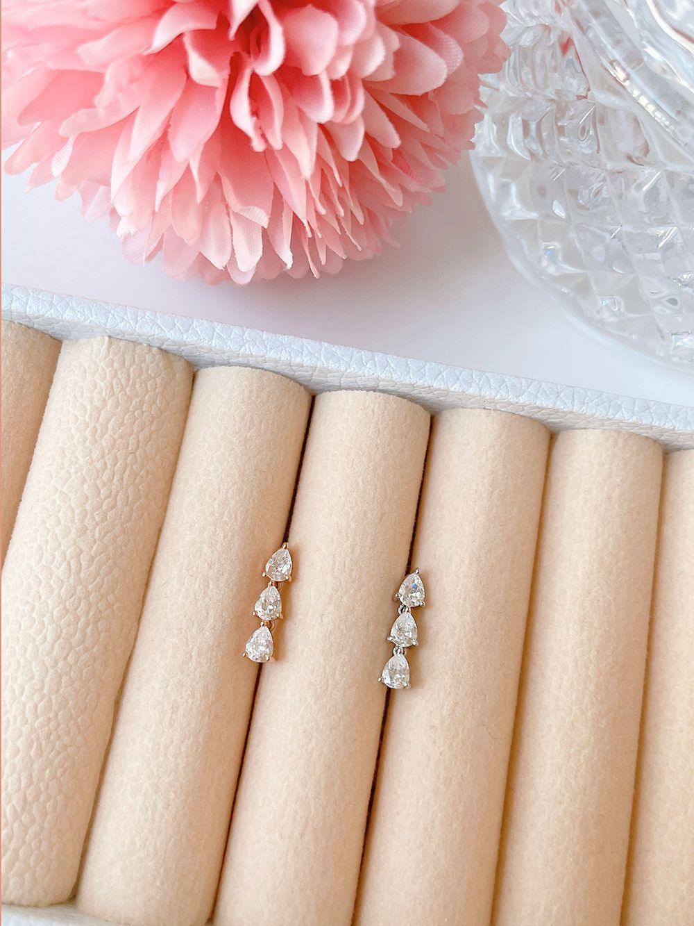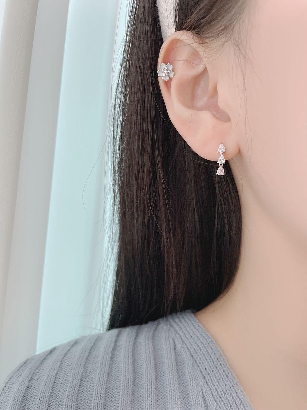 ต่างหูระย้าคู่นี้มีดีไซน์เป็นเพชรคิวบิกเซอร์โคเนียลายจุดสามจุดที่พลิ้วไหวเป็นลวดลายหยดน้ำ ทำให้ดูเป็นผู้หญิงและเปล่งประกาย!