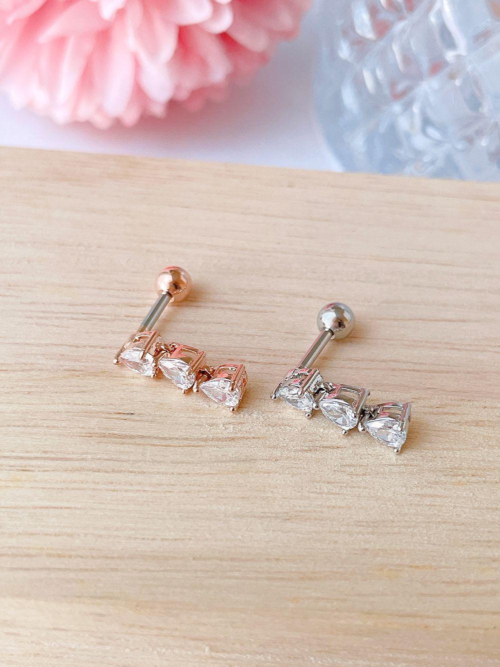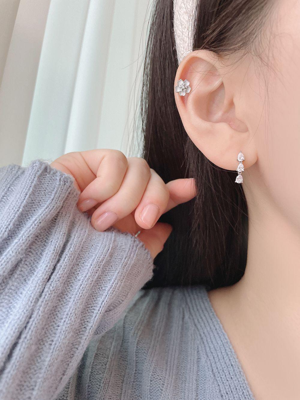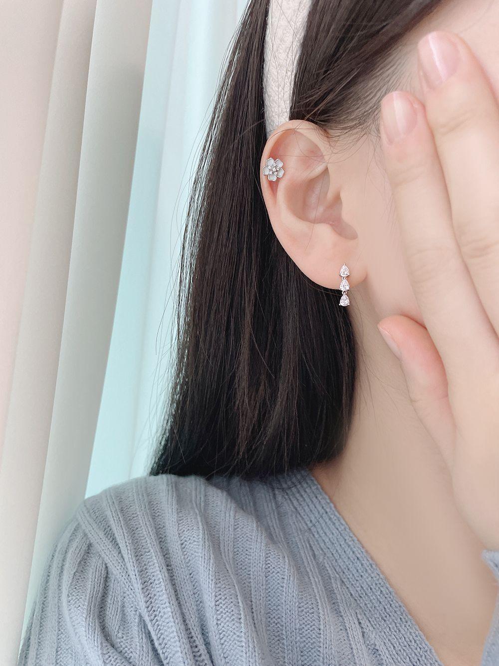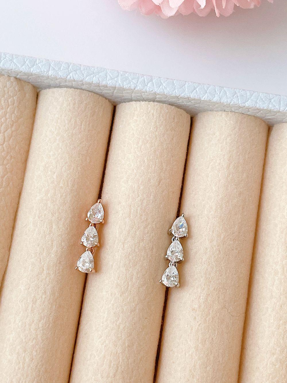 ต่างหูระย้าคู่นี้มีดีไซน์เป็นเพชรคิวบิกเซอร์โคเนียลายจุดสามจุดที่พลิ้วไหวเป็นลวดลายหยดน้ำ ทำให้ดูเป็นผู้หญิงและเปล่งประกาย!