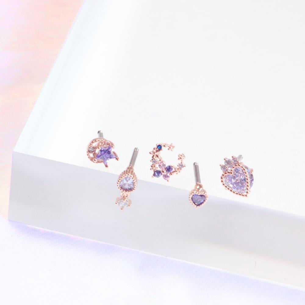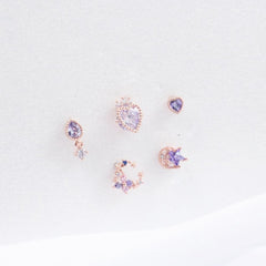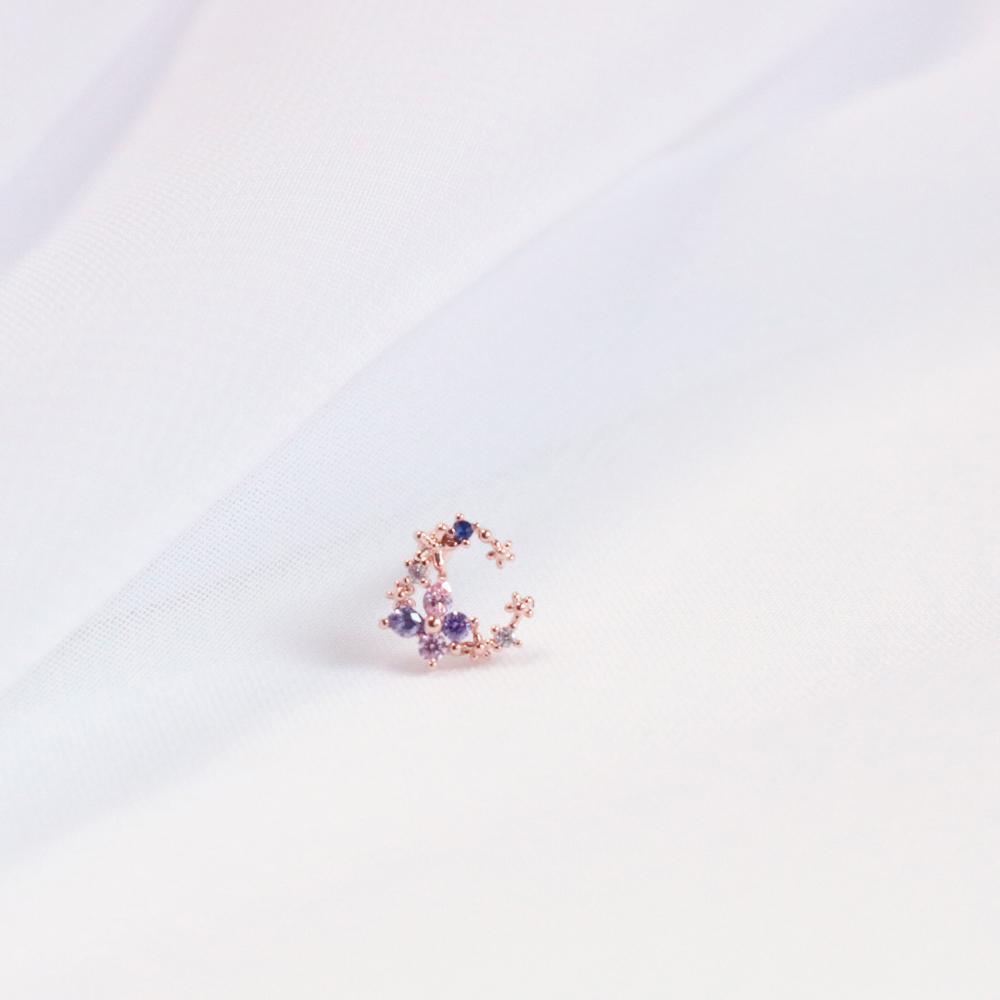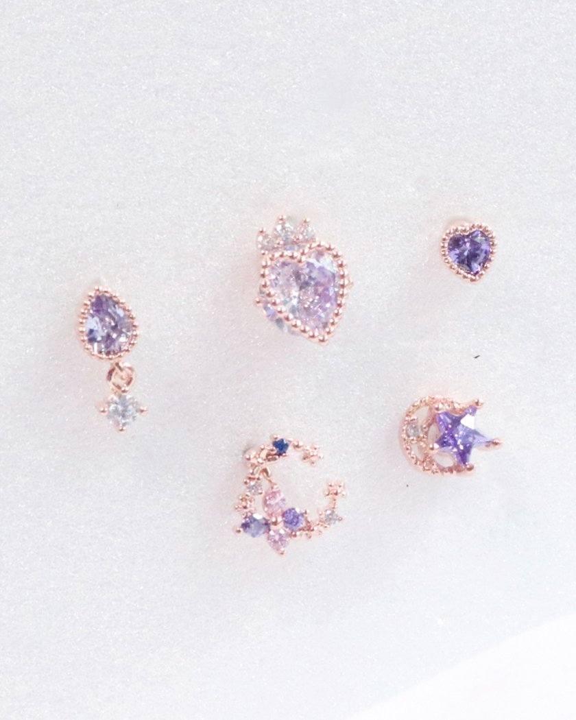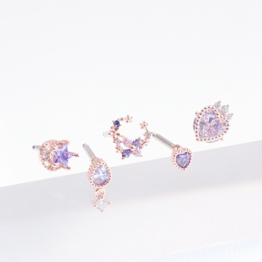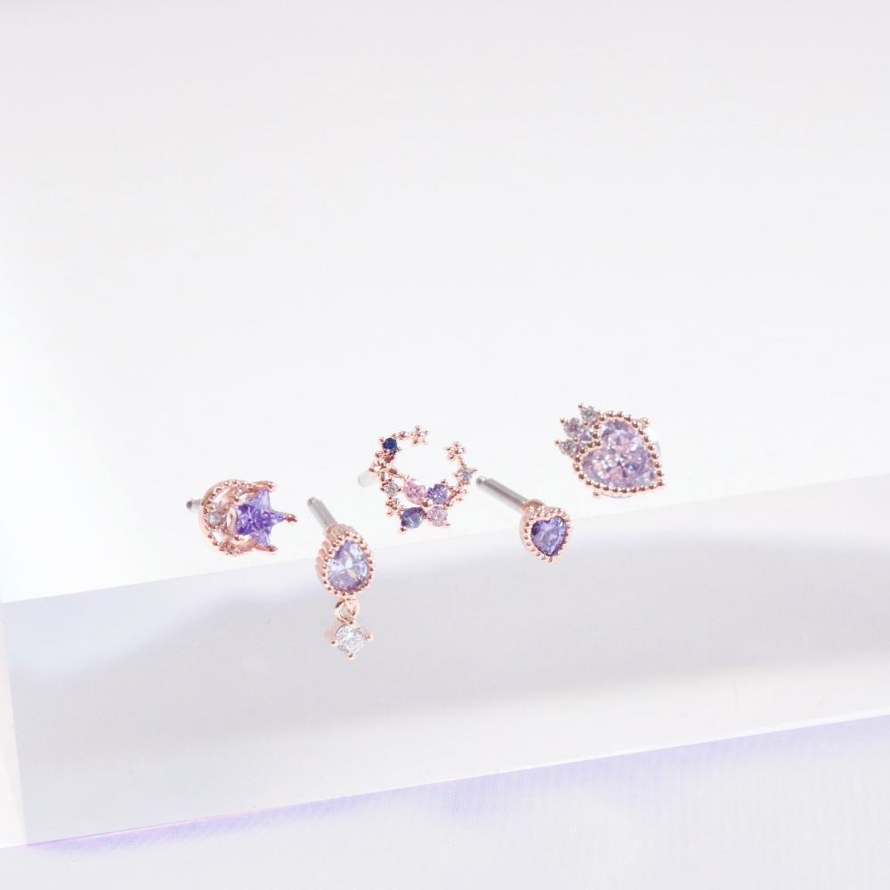 ฐานทองคำชมพูผสมผสานเข้ากับเพชรคิวบิกเซอร์โคเนียสีม่วงอ่อนอย่างกลมกลืนเพื่อสร้างผลิตภัณฑ์ที่ส่งกลิ่นอายแห่งความหรูหราและสง่างาม