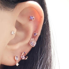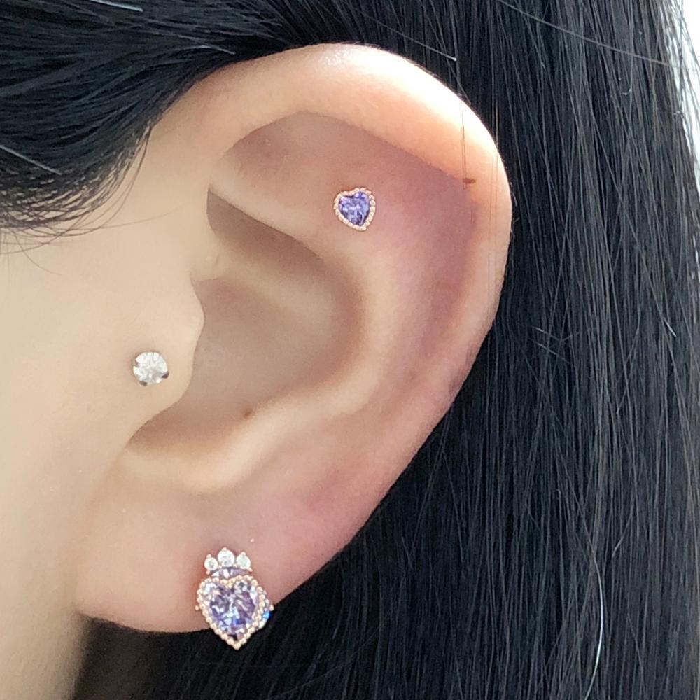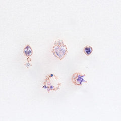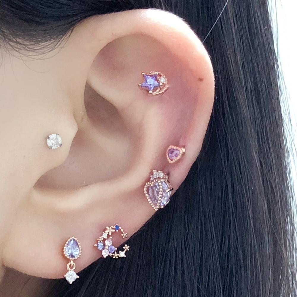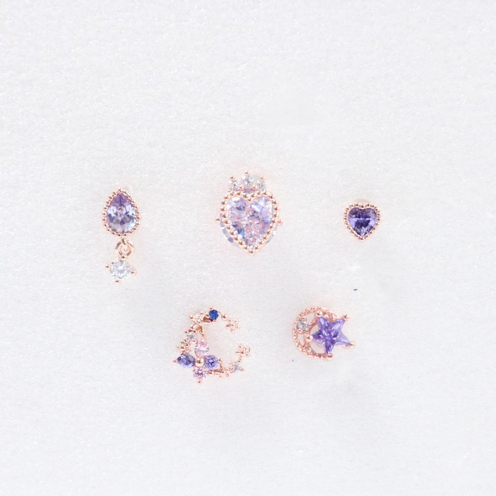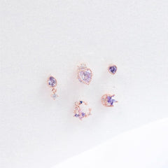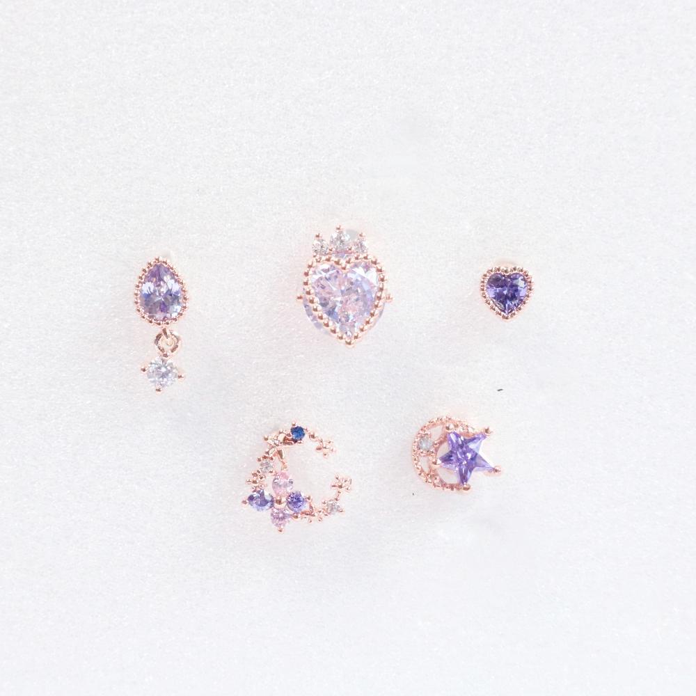ฐานทองคำชมพูผสมผสานเข้ากับเพชรคิวบิกเซอร์โคเนียสีม่วงอ่อนอย่างกลมกลืนเพื่อสร้างผลิตภัณฑ์ที่ส่งกลิ่นอายแห่งความหรูหราและสง่างาม