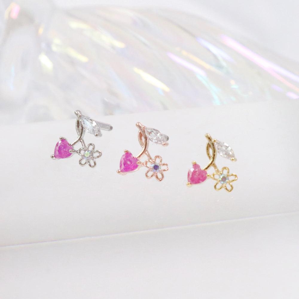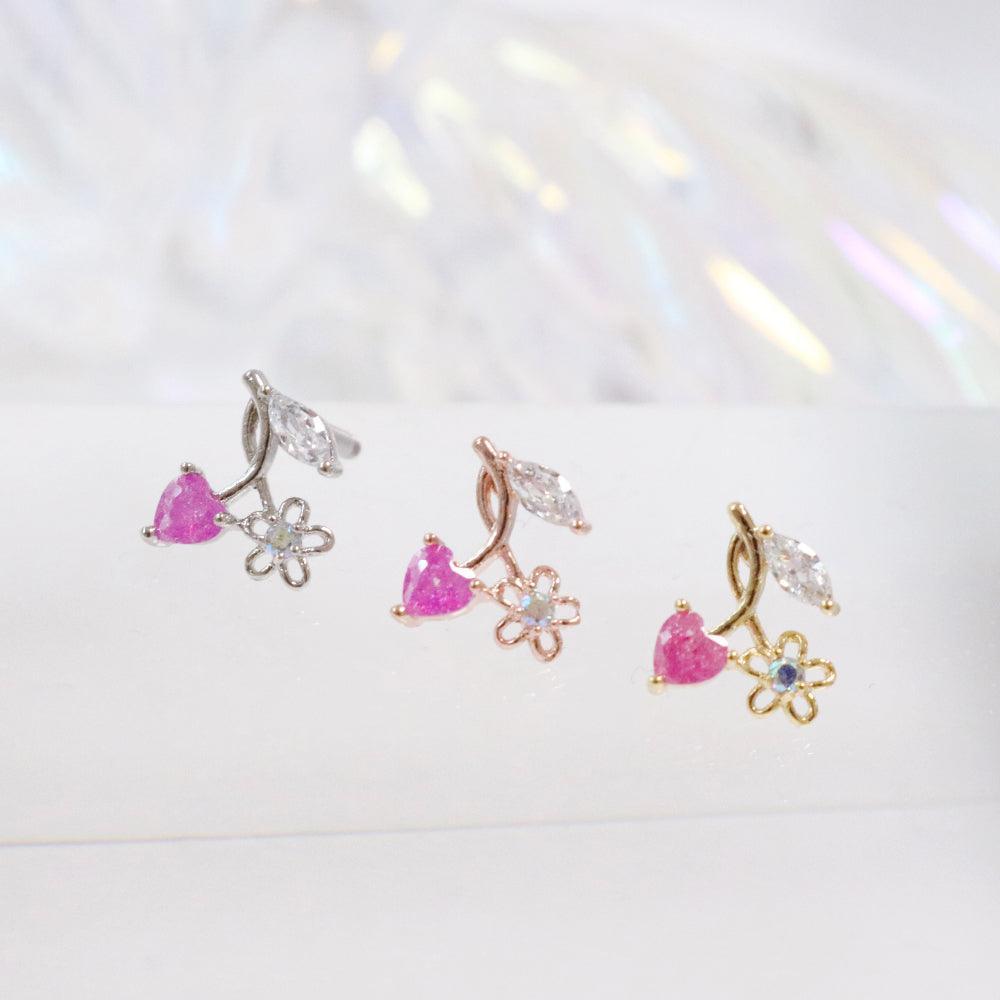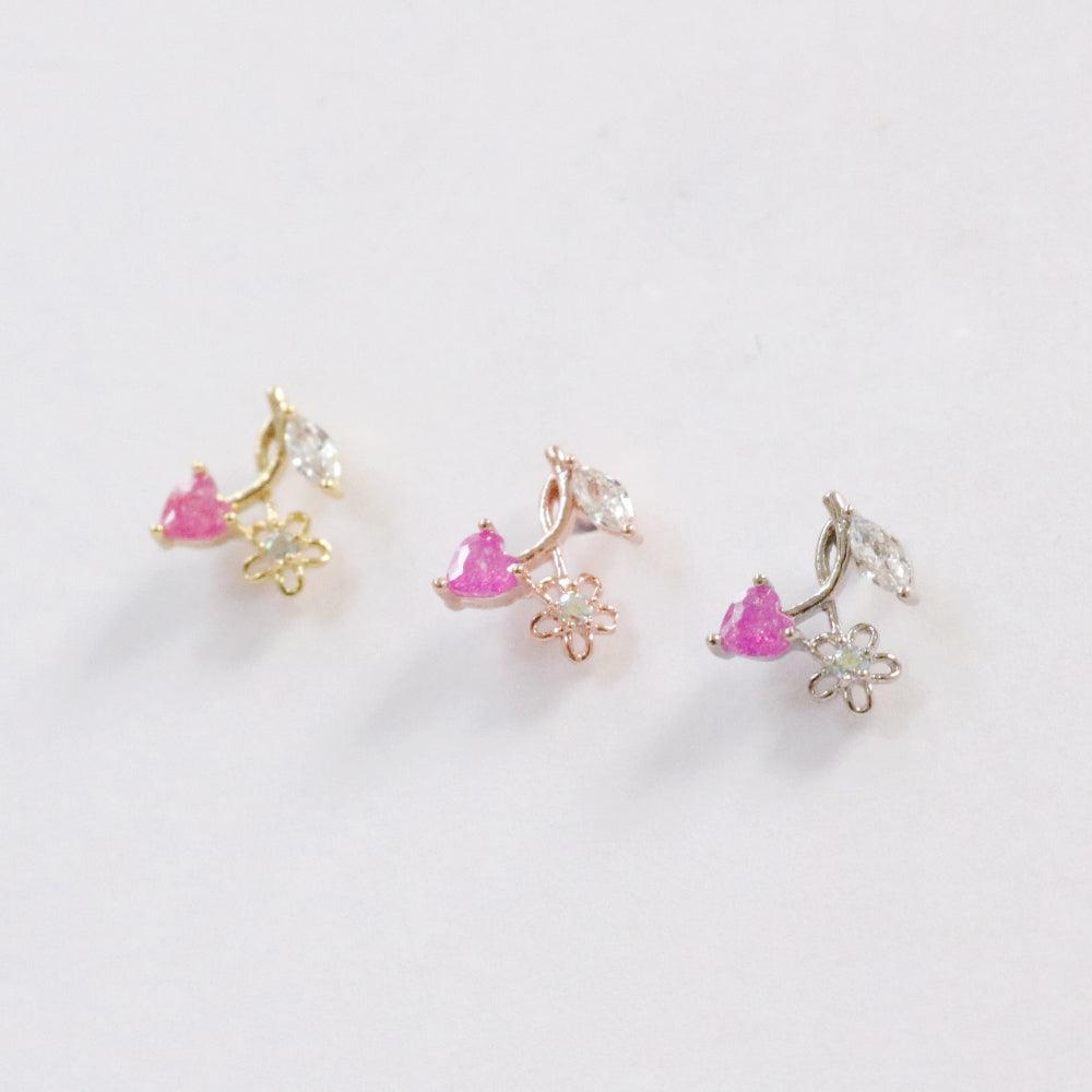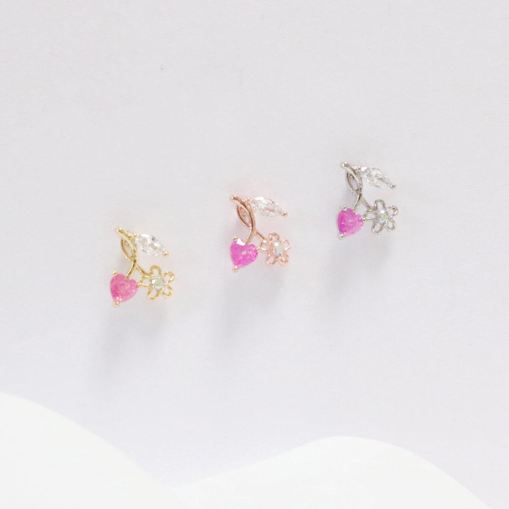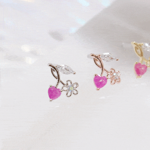 ต่างหูสุดน่ารักและไม่ซ้ำใครคู่นี้มีเพชรคิวบิกเซอร์โคเนียสีชมพูเป็นไฮไลท์ :)