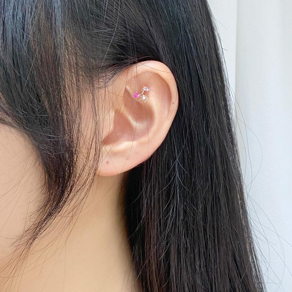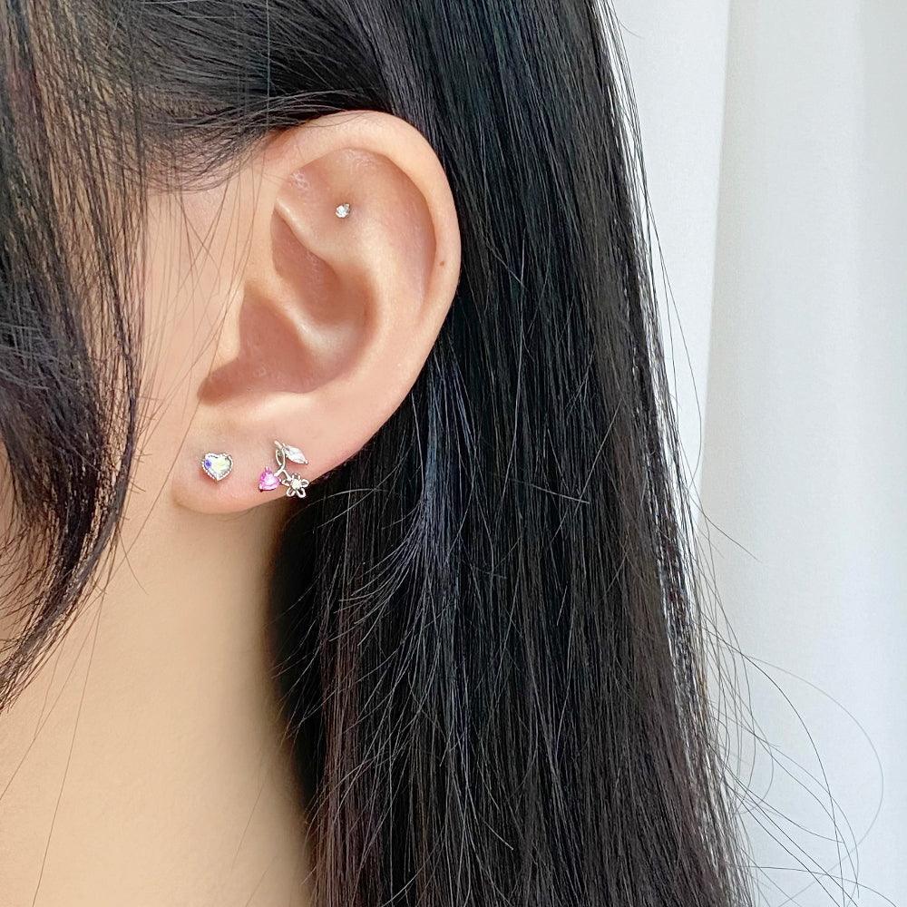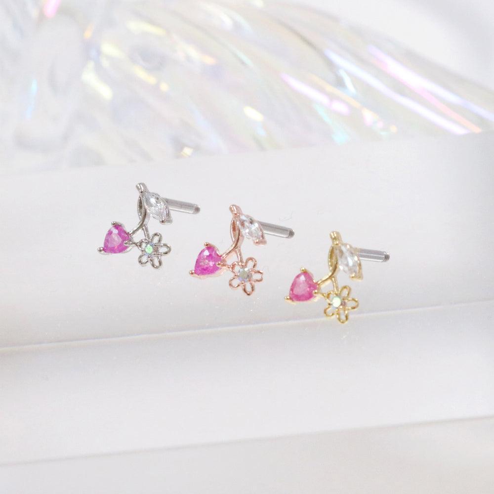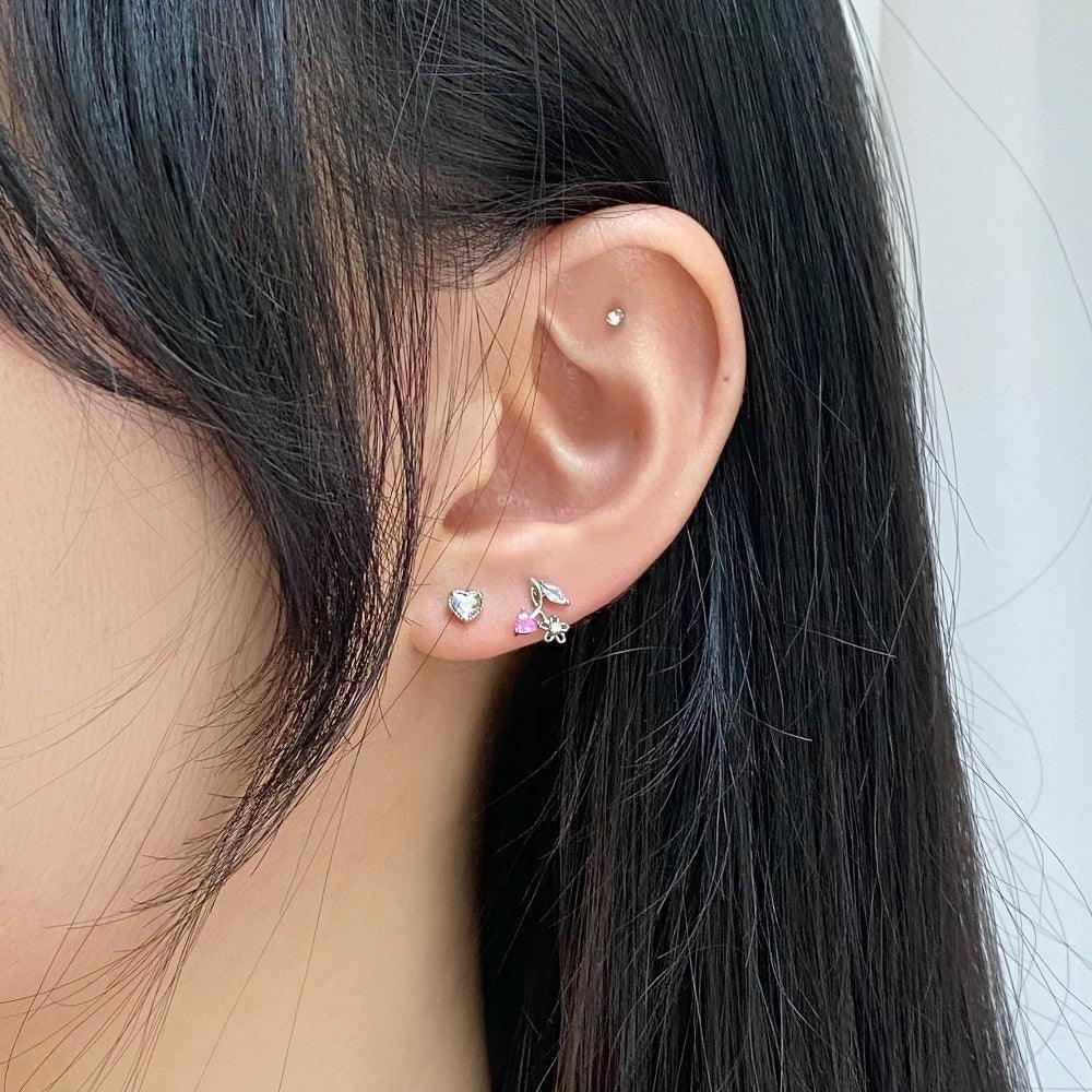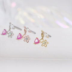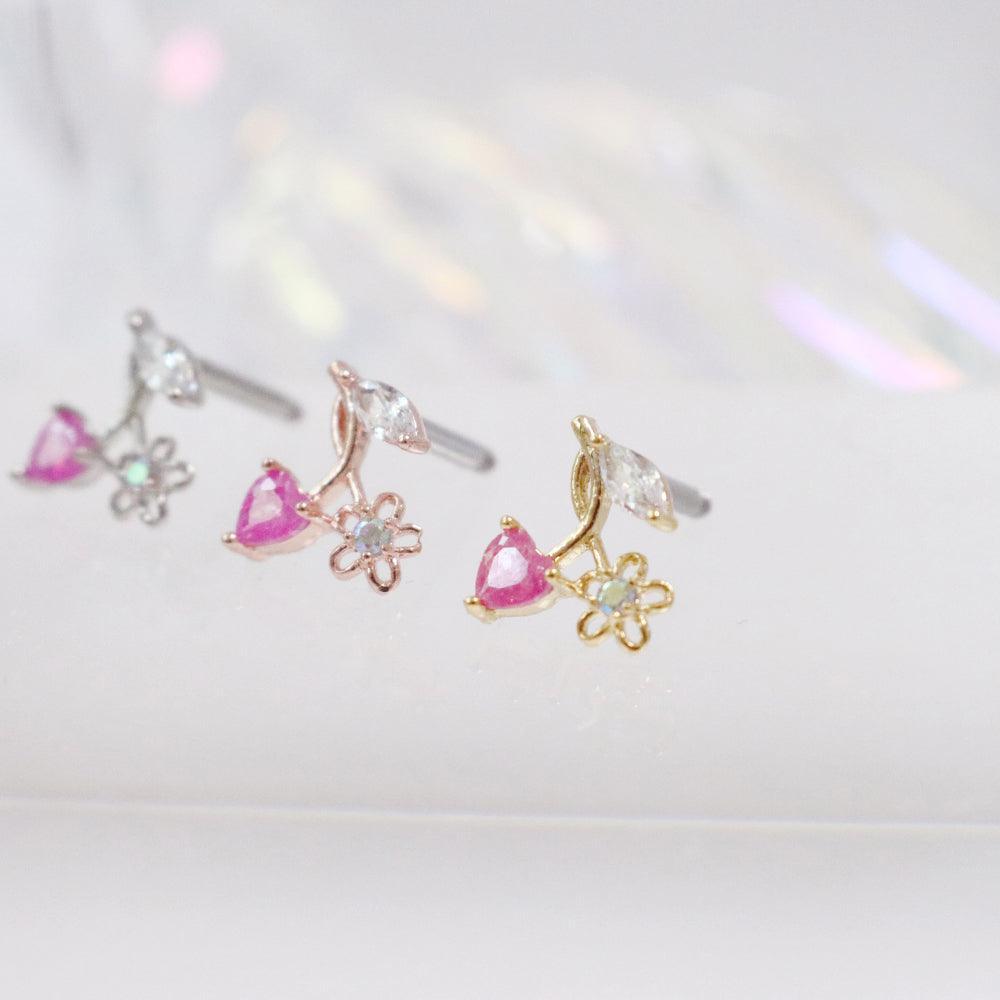 ต่างหูสุดน่ารักและไม่ซ้ำใครคู่นี้มีเพชรคิวบิกเซอร์โคเนียสีชมพูเป็นไฮไลท์ :)