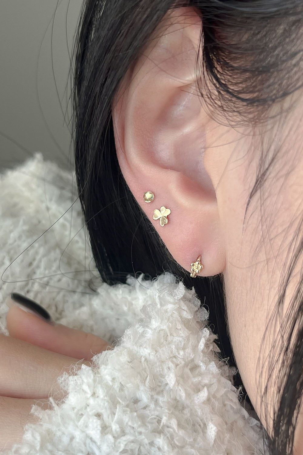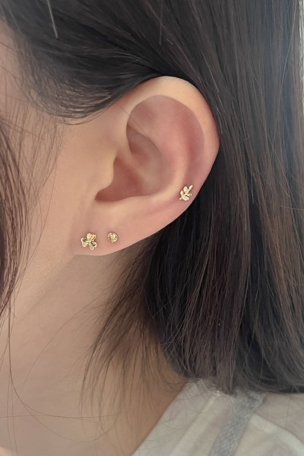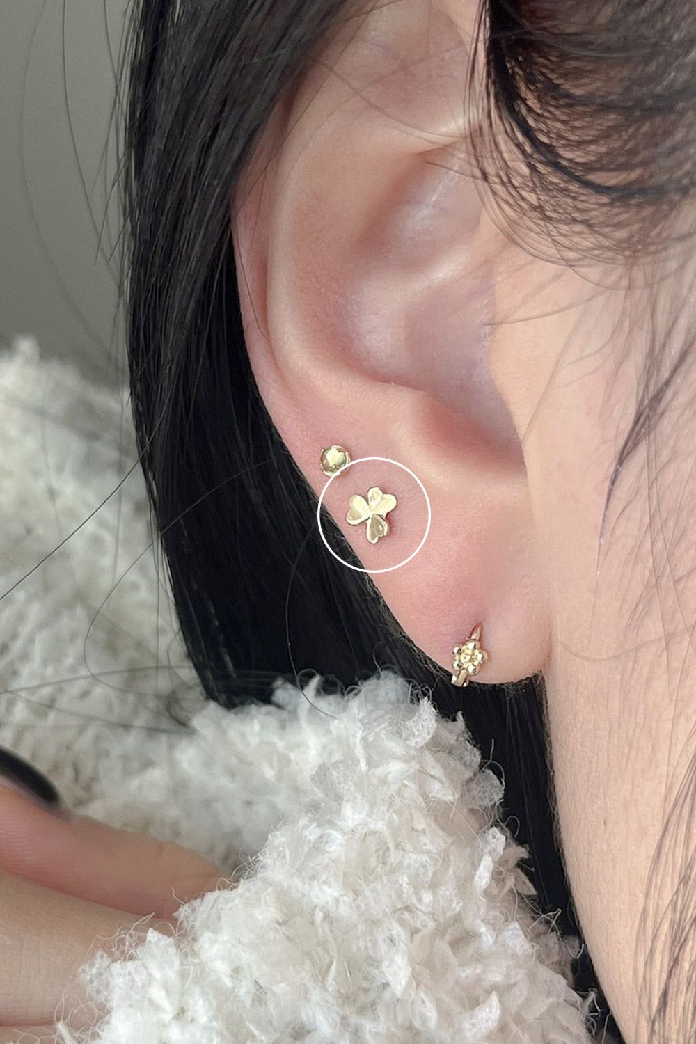 ต่างหูรูปโคลเวอร์สี่แฉกนี้มีเนื้อสัมผัสที่หนาและเรียบเนียน