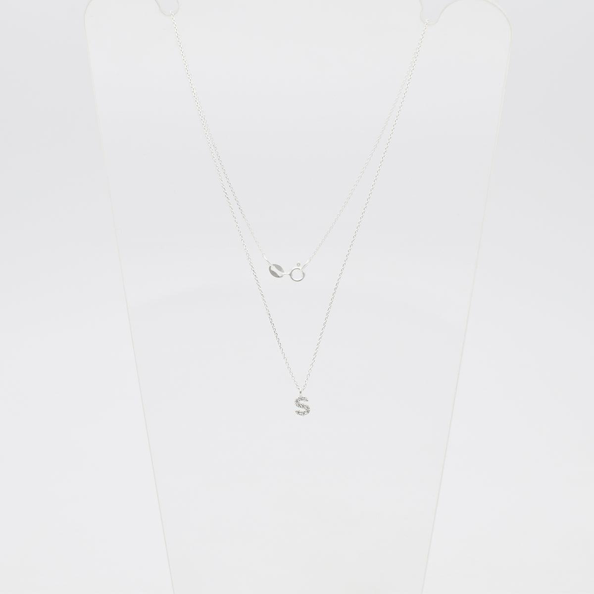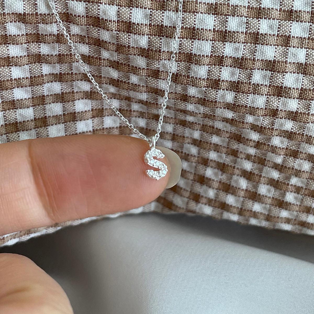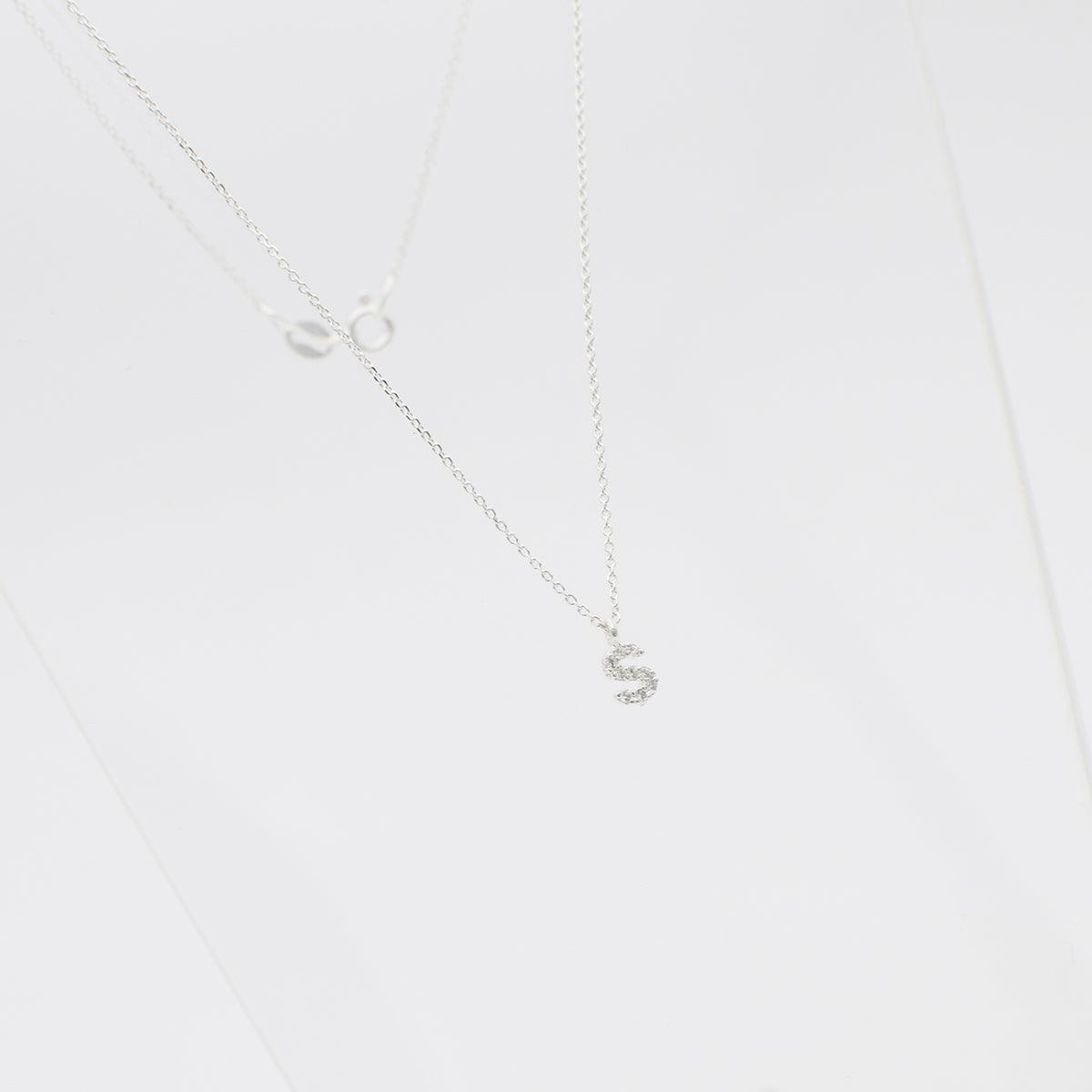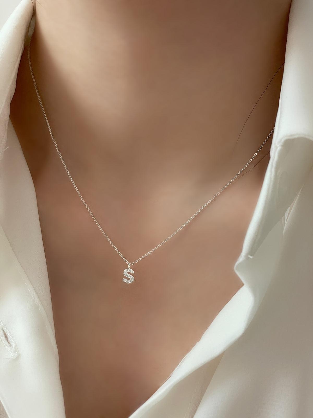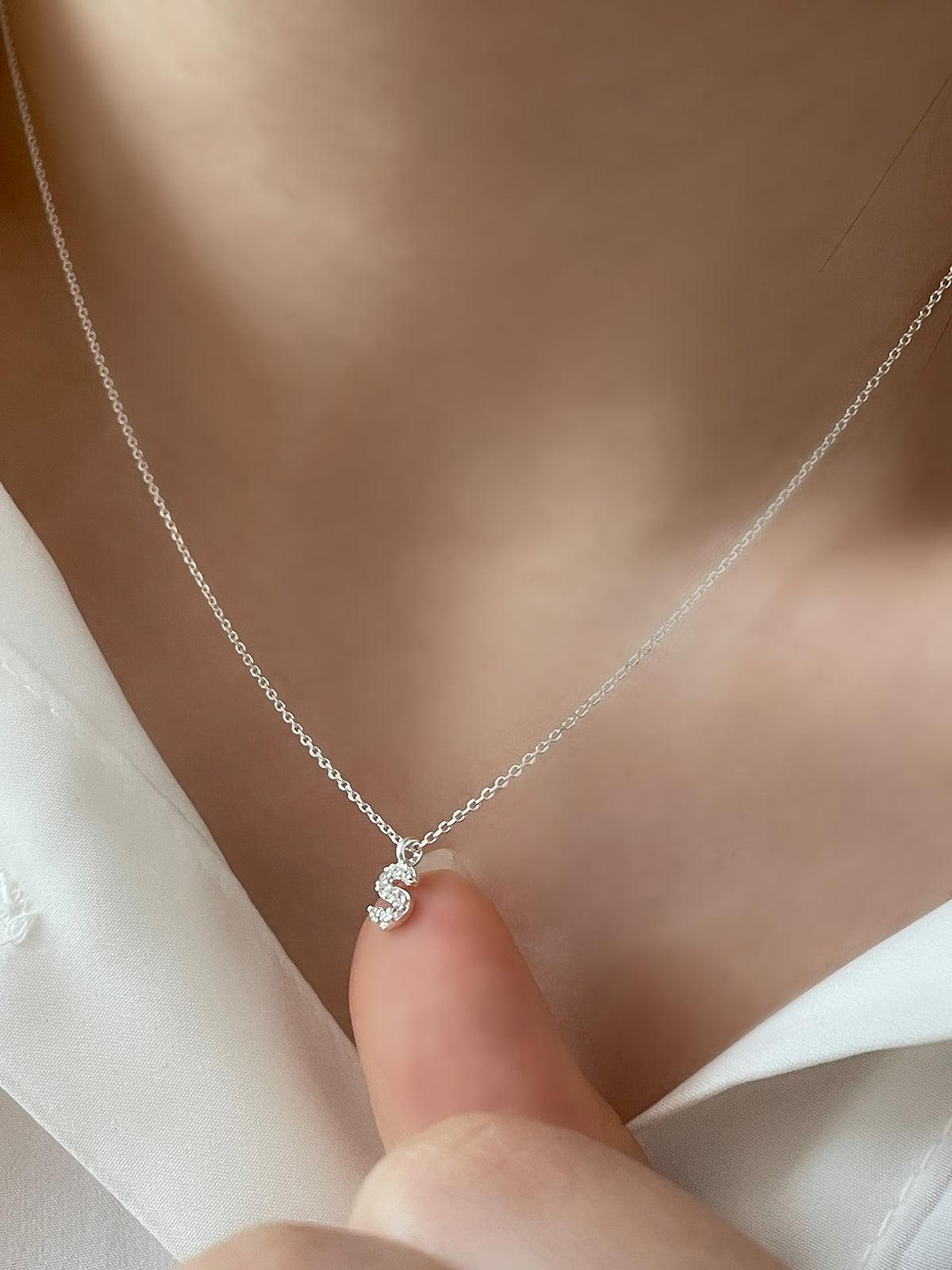 สร้อยคอเส้นนี้ทำด้วยจี้ตัวอักษรย่อลูกบาศก์ขนาดเล็กที่แวววาว