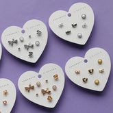 [พร้อมส่ง] [เซ็ต 12 ชิ้น] เซ็ตต่างหู Heart & Heart - สีแดง