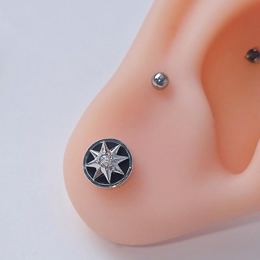 ต่างหูโล่ทรงกลมคู่นี้ประดับด้วยเพชรคิวบิกเซอร์โคเนียที่เปล่งประกายระยิบระยับและตกแต่งด้วยลวดลายที่สดใหม่