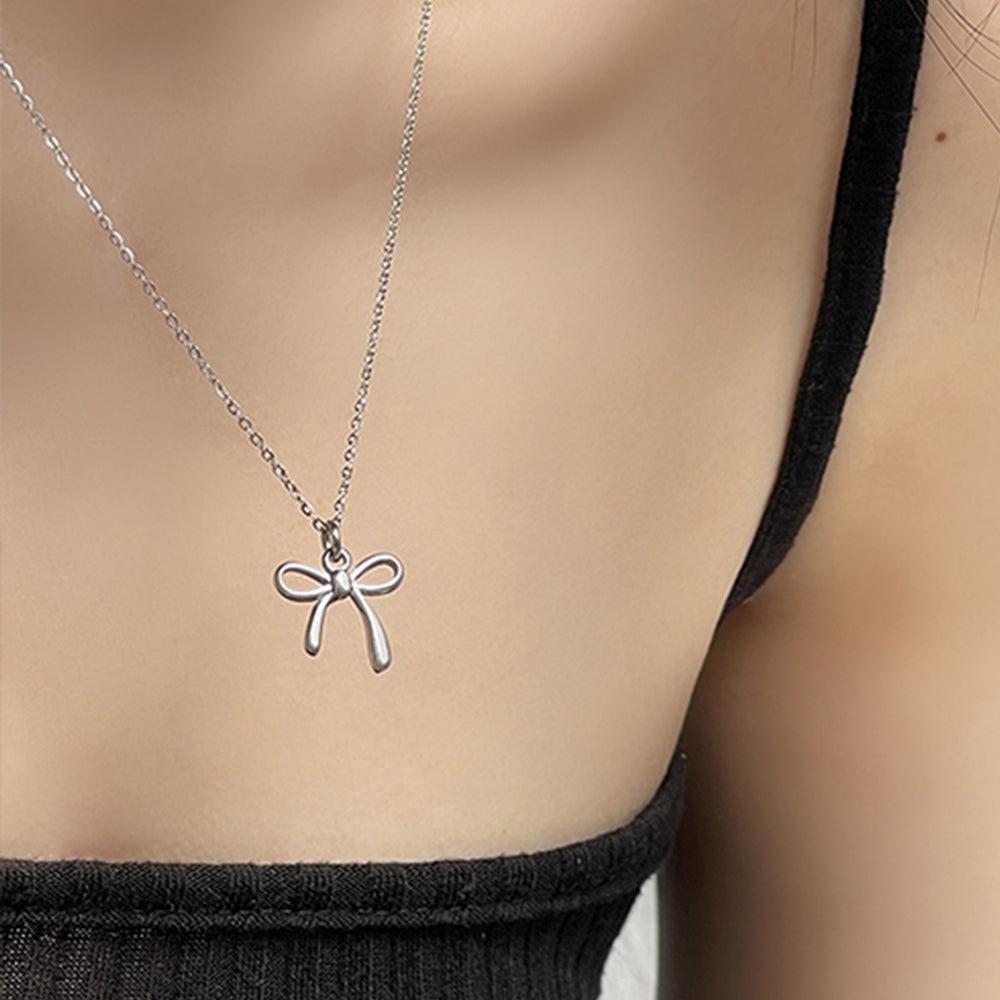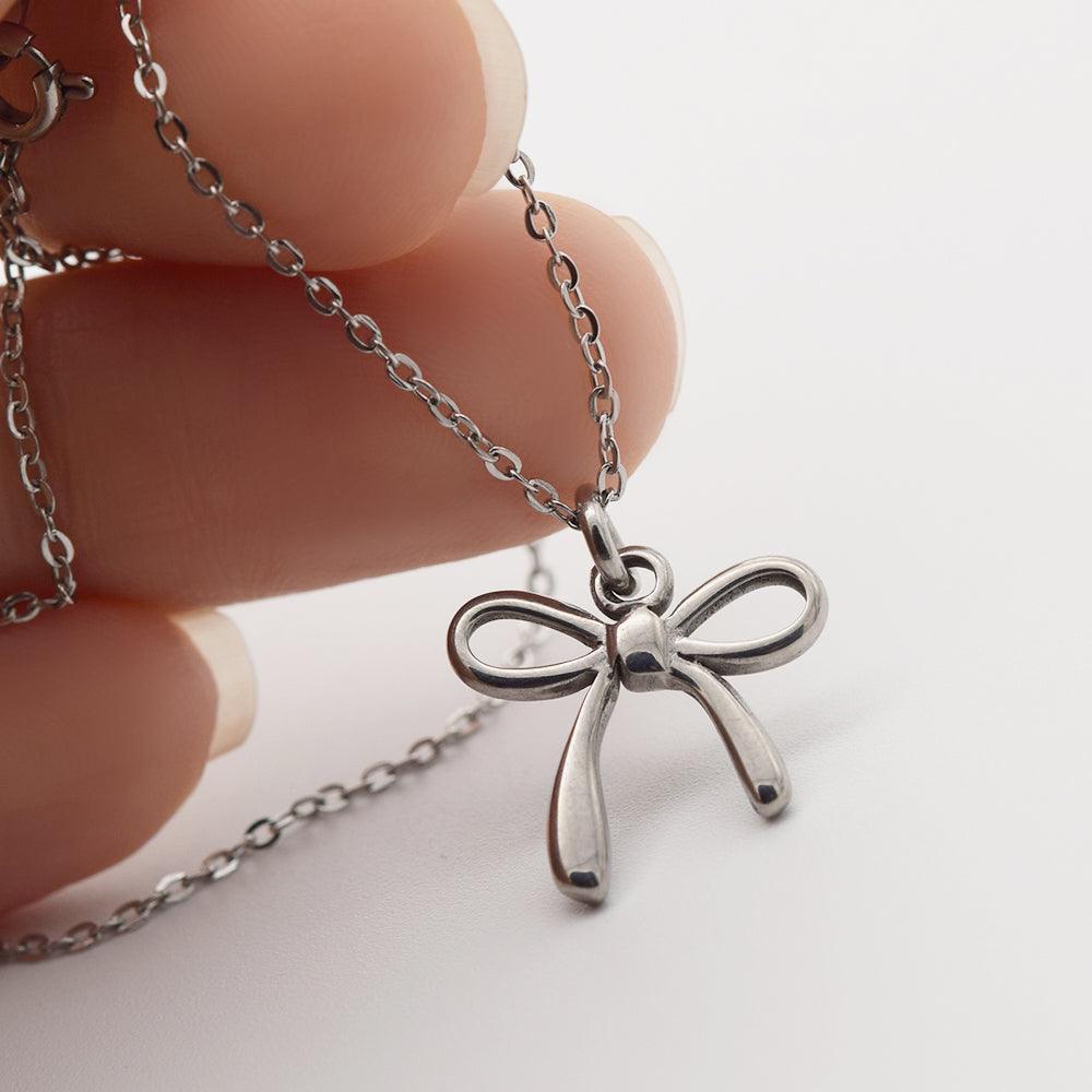 นี่คือสร้อยคอสุดน่ารักที่มีโซ่เส้นเล็กและริบบิ้นกลม
