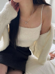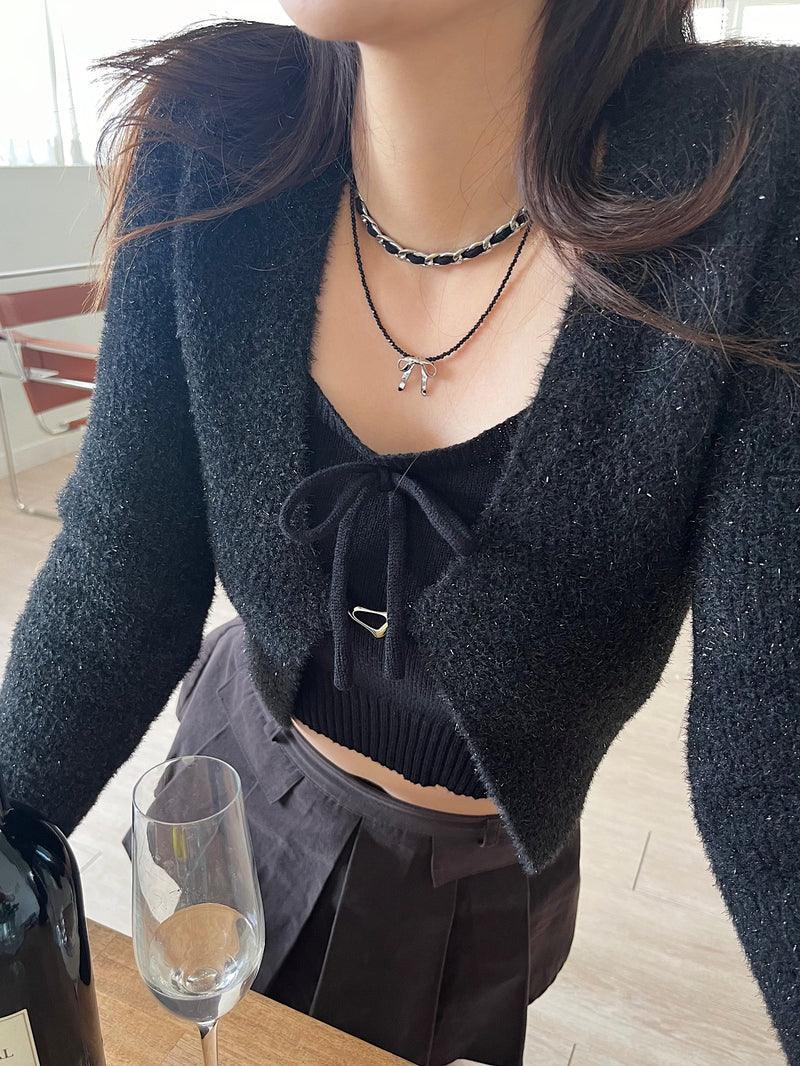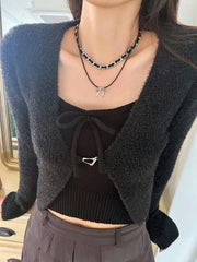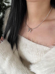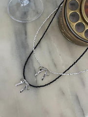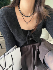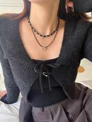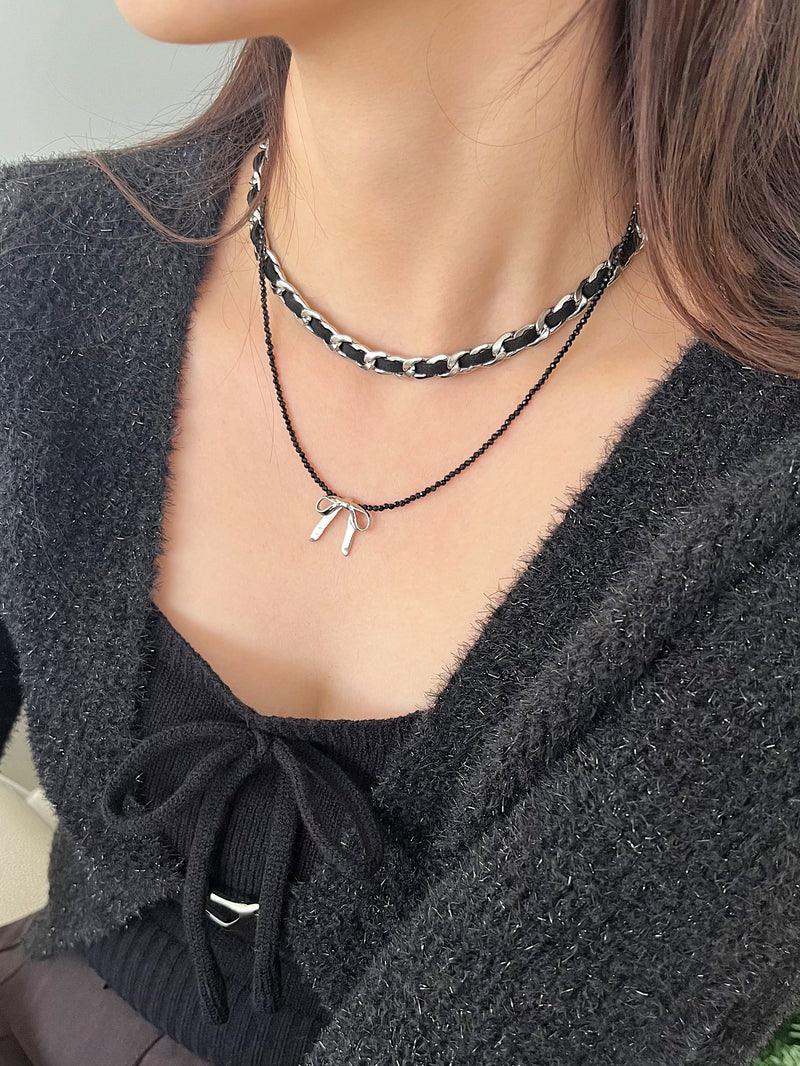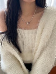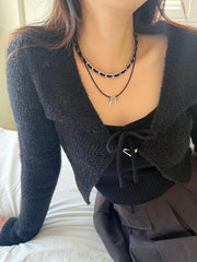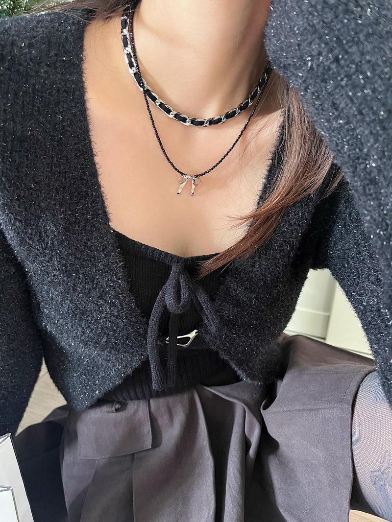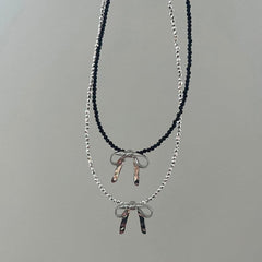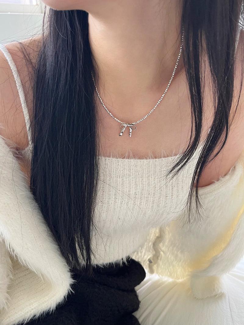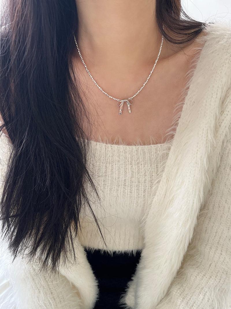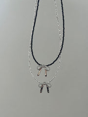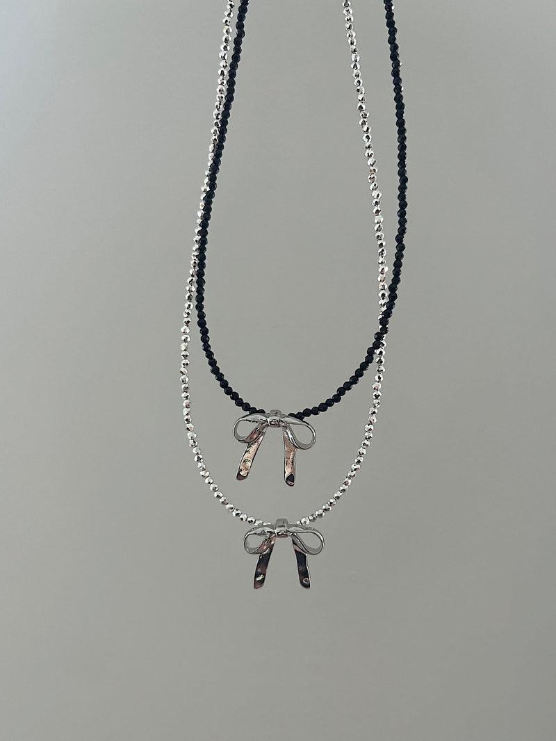 - สร้อยคอลูกปัดเจียระไนผิวเรียบแวววาว พร้อมจี้ริบบิ้น