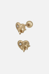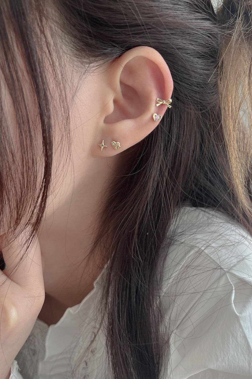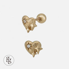 ต่างหูคู่นี้มีดีไซน์ที่เป็นเอกลักษณ์เฉพาะตัวด้วยรูปหัวใจและลวดลายประกายแวววาว พื้นผิวลายเส้นอันอ่อนโยนสร้างอารมณ์แบบโบราณและการแกะสลักที่เป็นประกายและการจัดวางเพชรคิวบิกเซอร์โคเนียเม็ดเล็กทำให้เกิดเสน่ห์ที่เปล่งประกาย ทำให้เป็นไอเท็มแนะนำที่จะสร้างความแตกต่างแม้จะใส่เพียงชิ้นเดียว