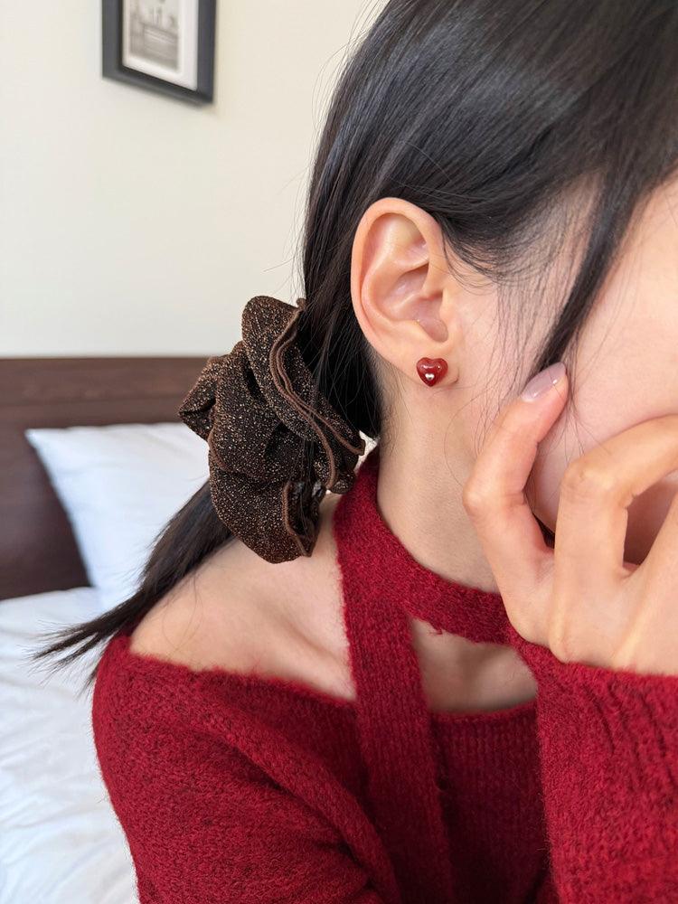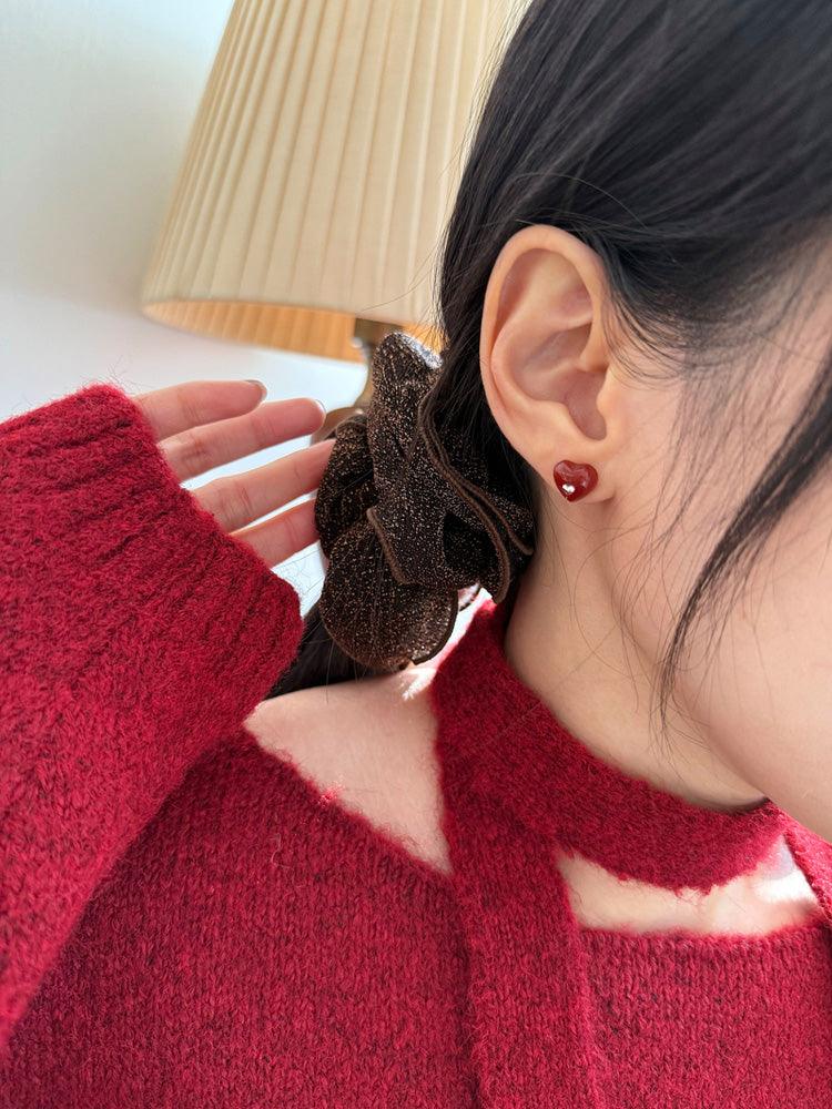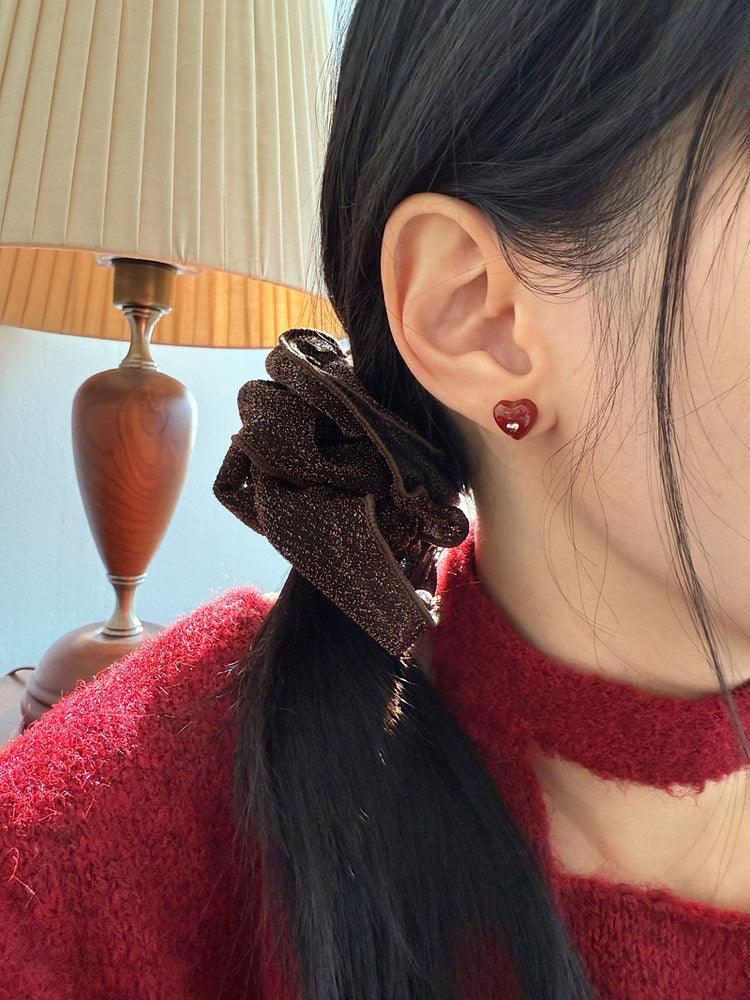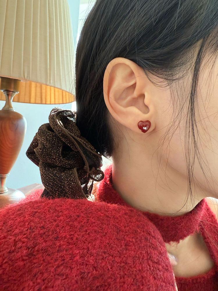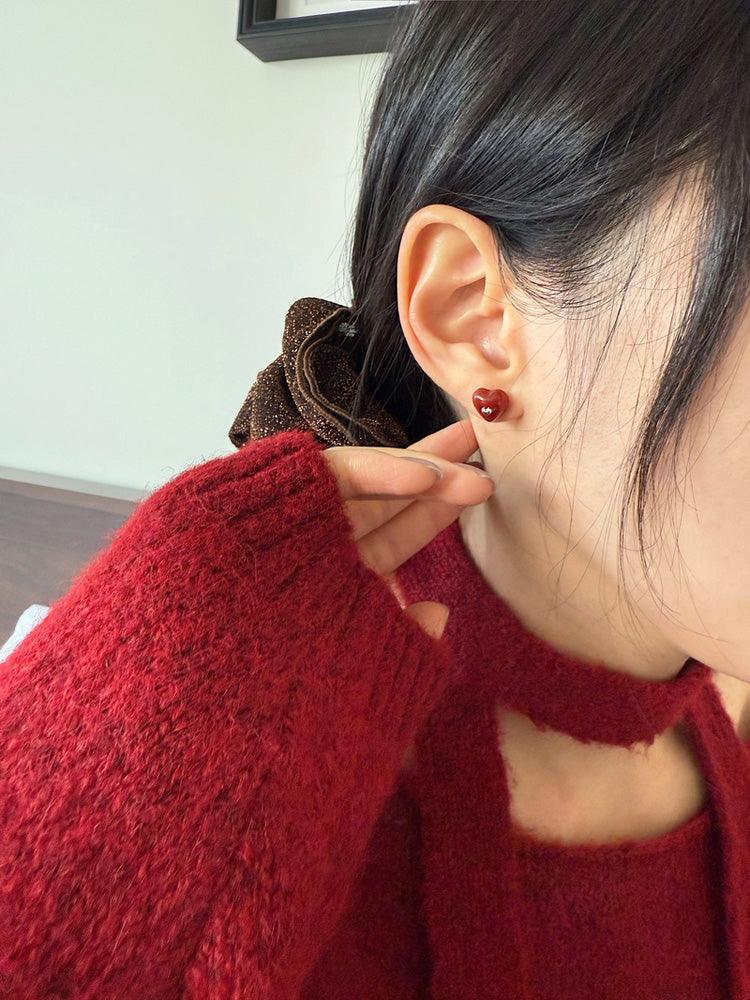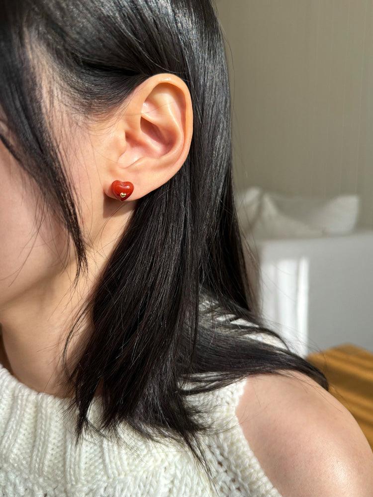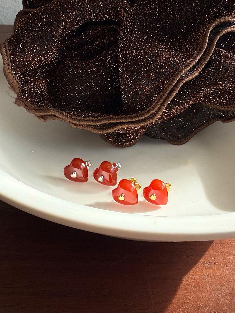 - ต่างหูดีไซน์รูปหัวใจจิ๋วประดับอัญมณีรูปหัวใจสีแดง