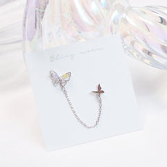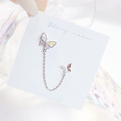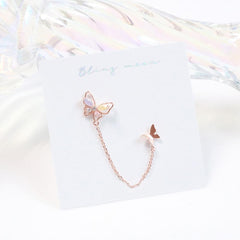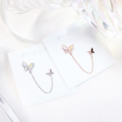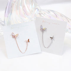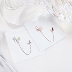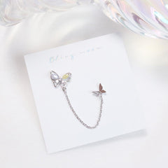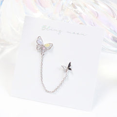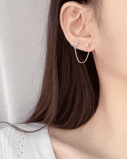 ต่างหูทั้ง 2 ข้างทำด้วยเข็มเจาะและเชื่อมต่อกันด้วยเครื่องมือโซ่