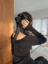 ผ้ารัดผมและกิ๊บติดผมลายกุหลาบซาติน (2แบบ/3สี) - ไวน์