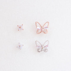 ต่างหูทรงผีเสื้อคู่นี้ประดับด้วยเพชรคิวบิกเซอร์โคเนียสีน้ำเงินเข้มเป็นเครื่องประดับเสริม เป็นสินค้าที่มีความแวววาว :)