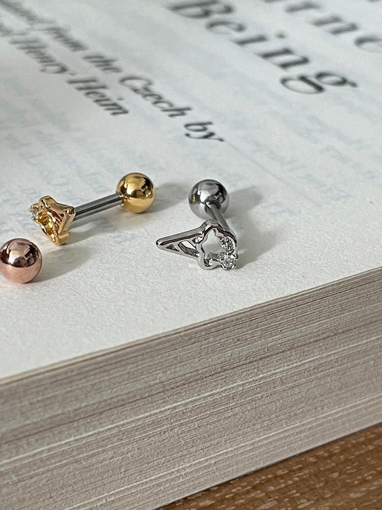 จี้: 4.7x7.6x1.7 มม. (กว้าง x สูง x หนา), ความหนาของแท่ง: 1.2 มม., ความยาวแท่ง: 6 มม., ลูกบอลด้านหลัง: 4 มม., สามารถถอดแท่งออกได้ น้ำหนัก: 0.5g, จำนวน: ชิ้นเดียว