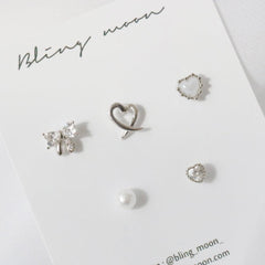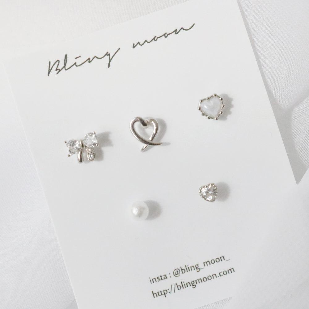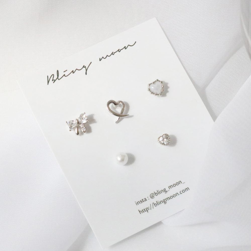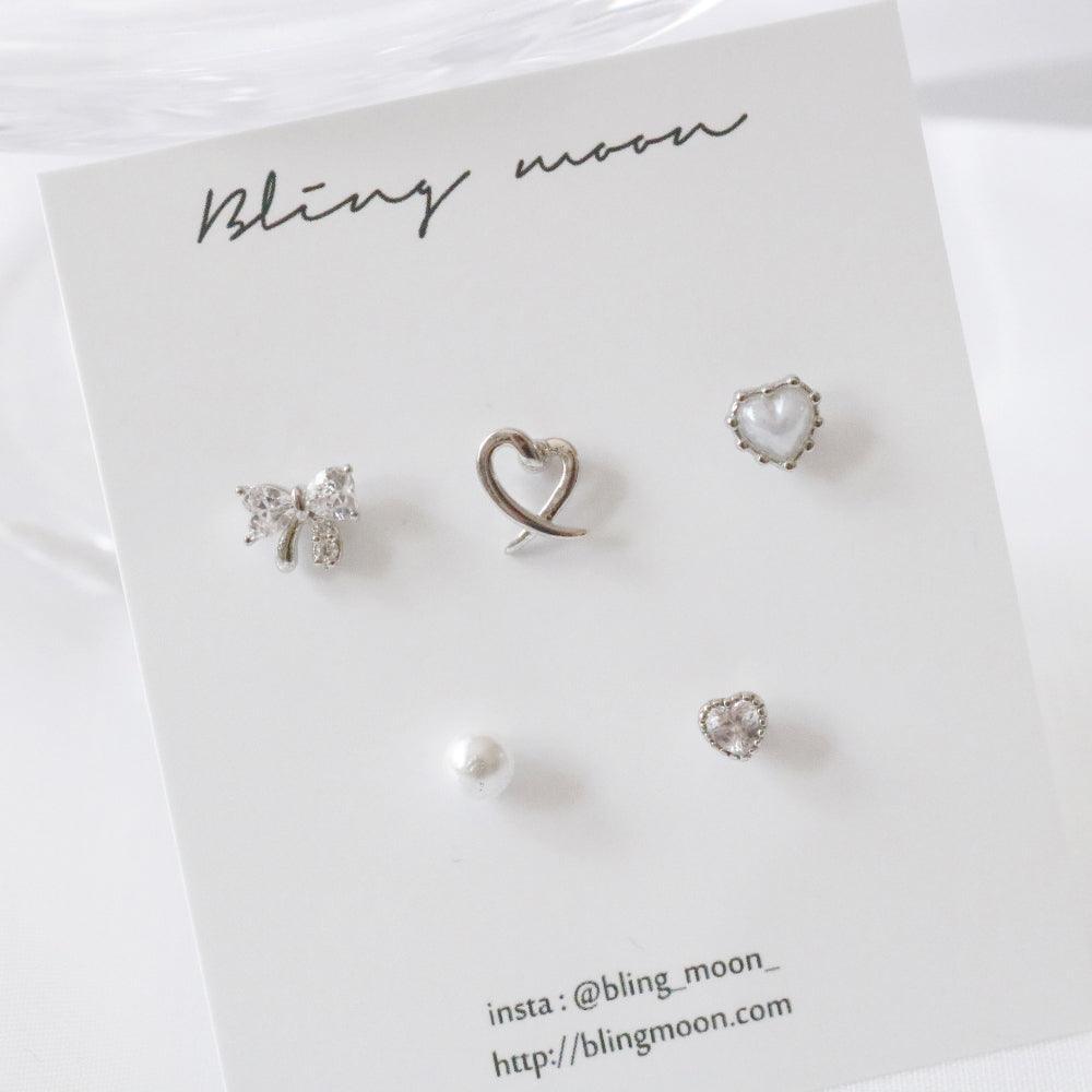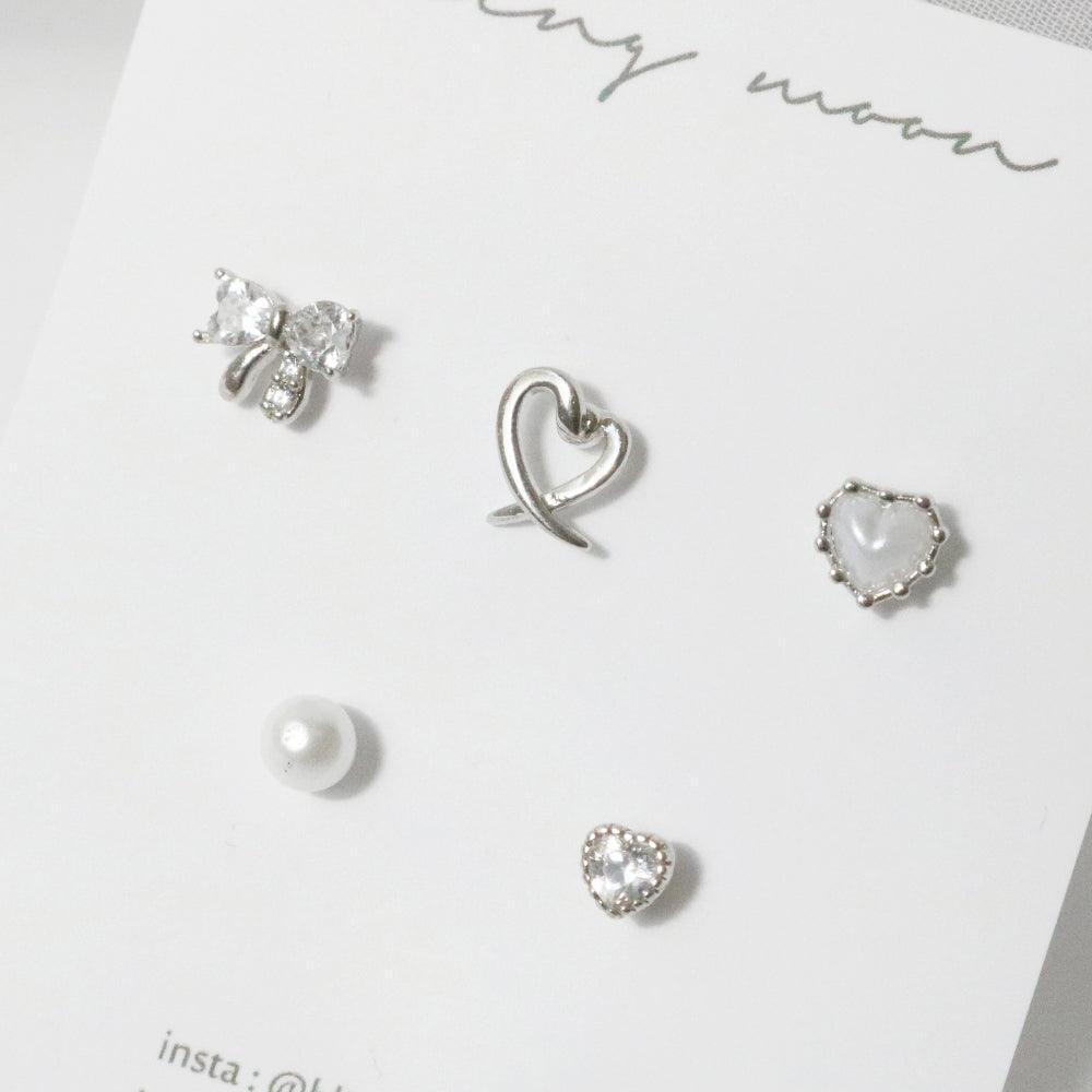 リボン真珠ピアッシング(5 set) Piercing bling moon