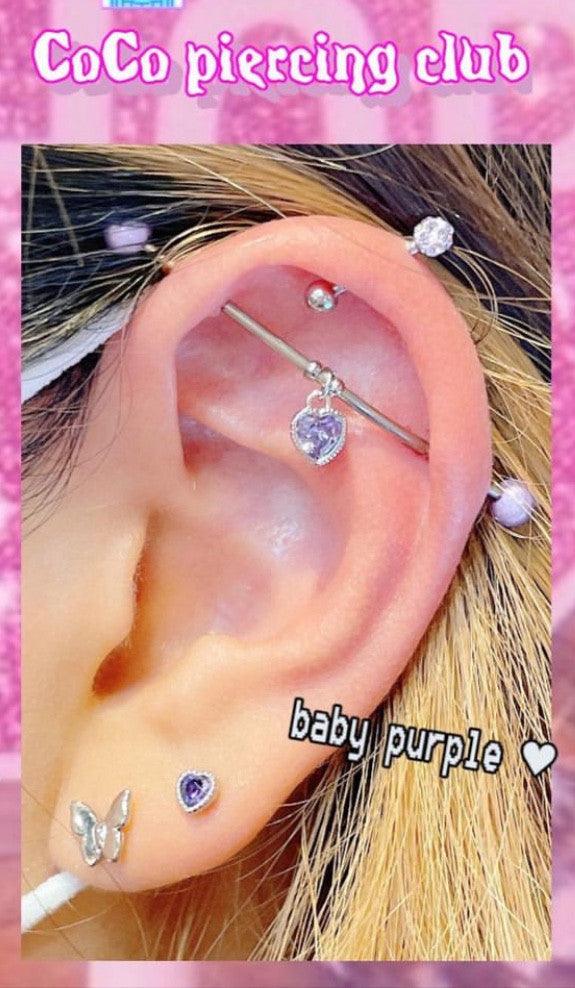 [ผ่าตัด] ตุ้มหูหัวใจสีม่วงสไตล์อุตสาหกรรม (3 สี) 16G COCO.MADE