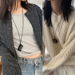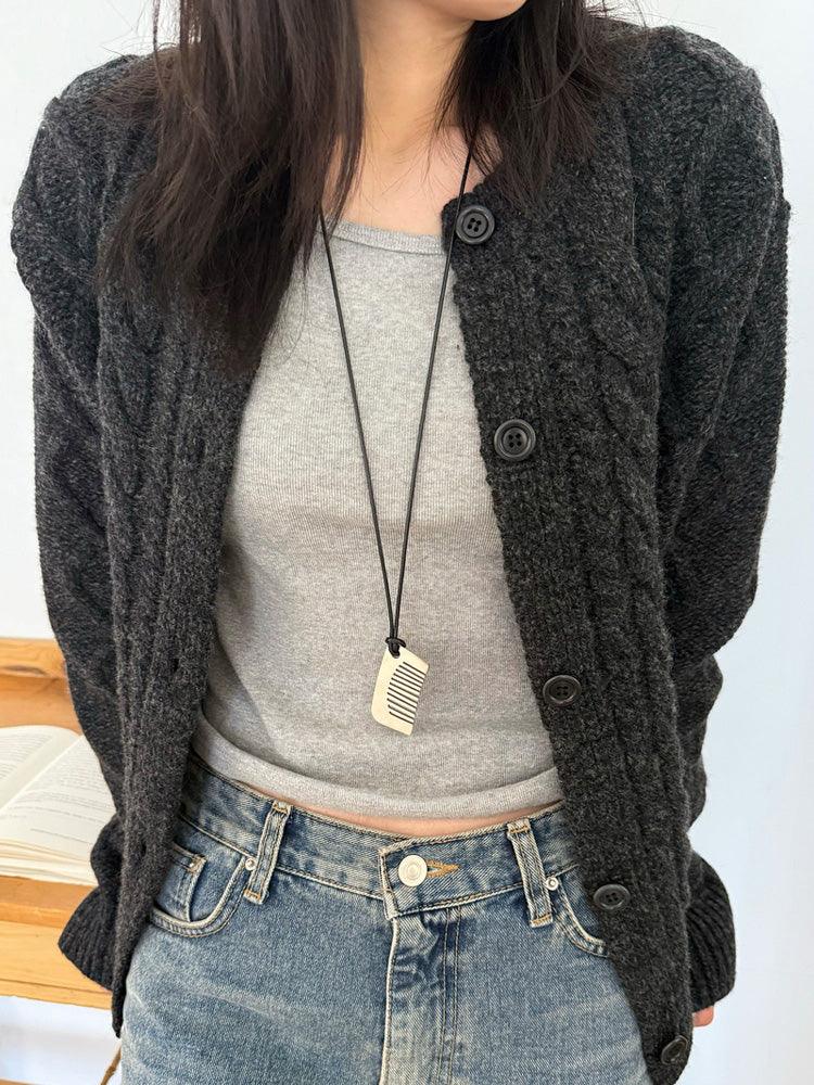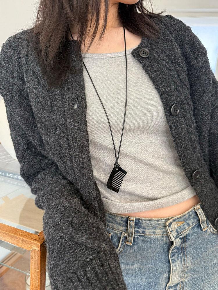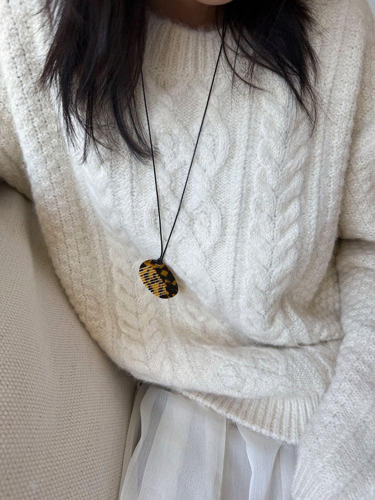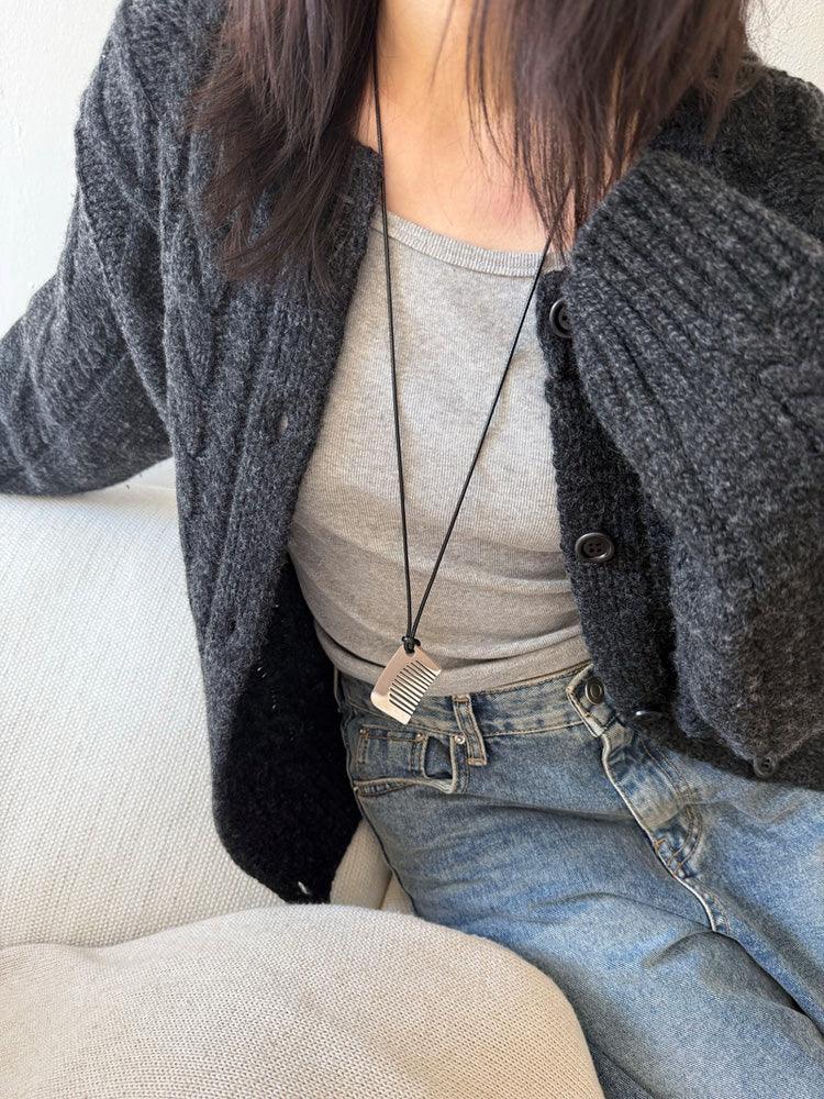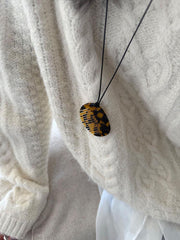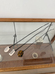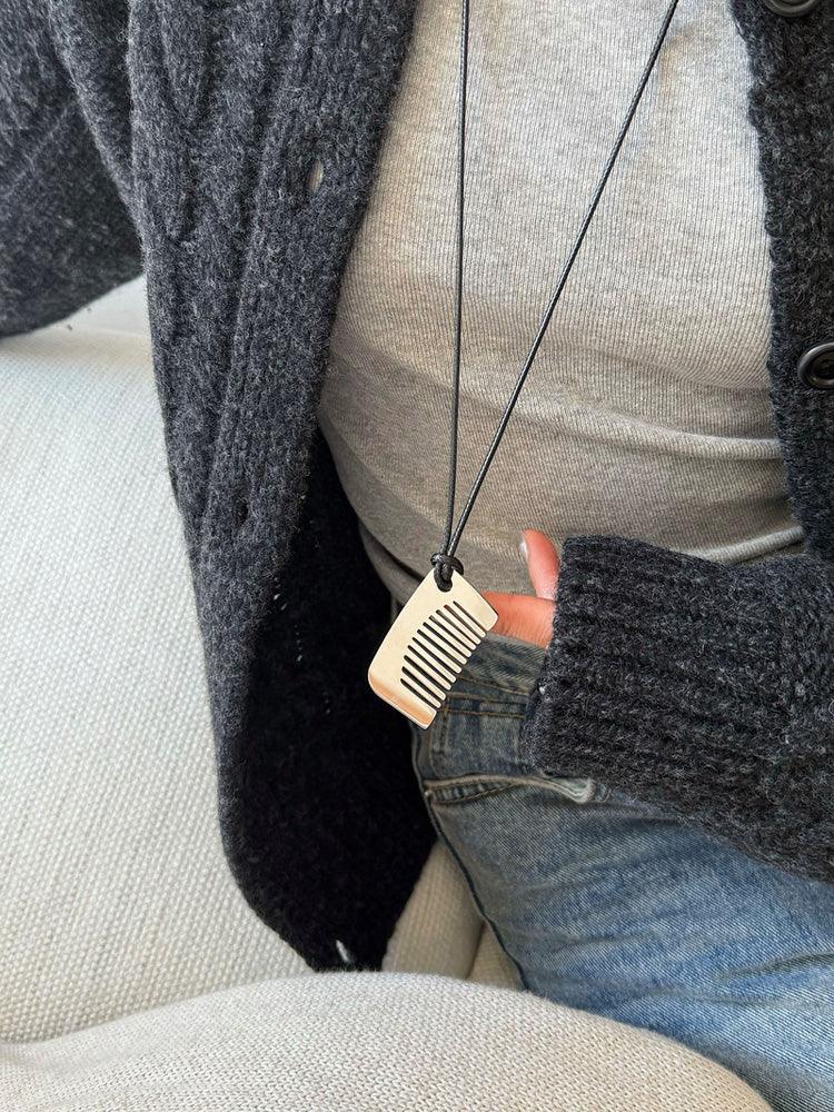 - สร้อยคอพร้อมสายหนังสีดำยาวและจี้หวีโลหะ/ลายเสือดาวที่เข้ากัน