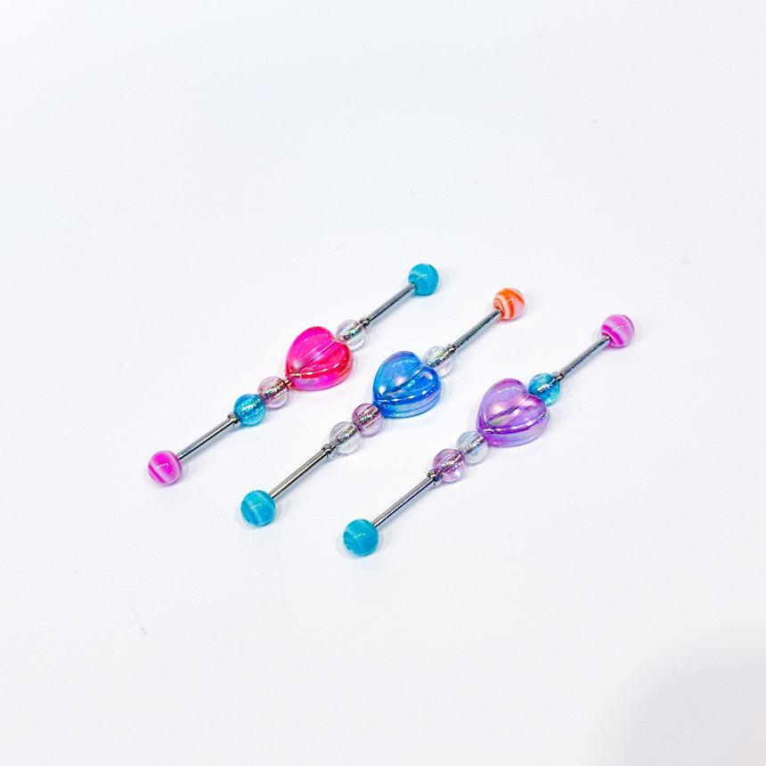 ต่างหูสไตล์อินดัสเทรียลที่ผสมผสานลูกบอลสีสันน่ารักและหัวใจอวบอิ่ม!
